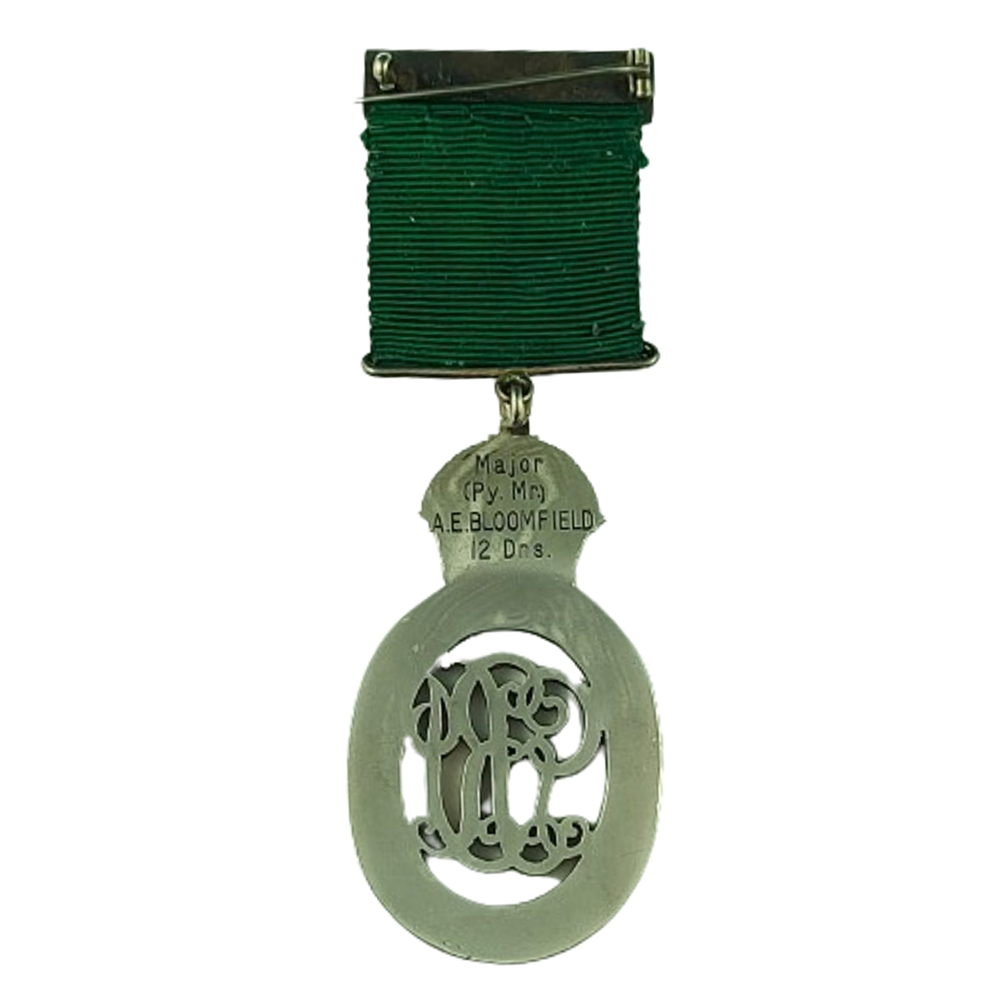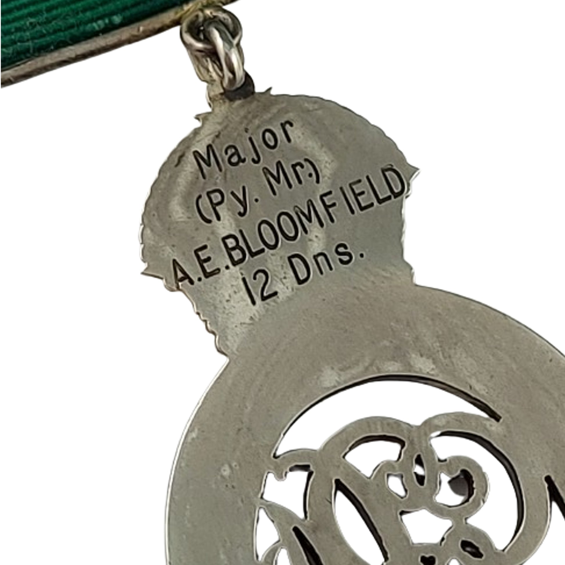 Bi-metal construction with issue ribbon and pinback fastener in place. Engraved to the reverse, Major (Py. Mr.) A.E. Bloomfield, 12th Dns. (12th Dragoons). SKU: 61212