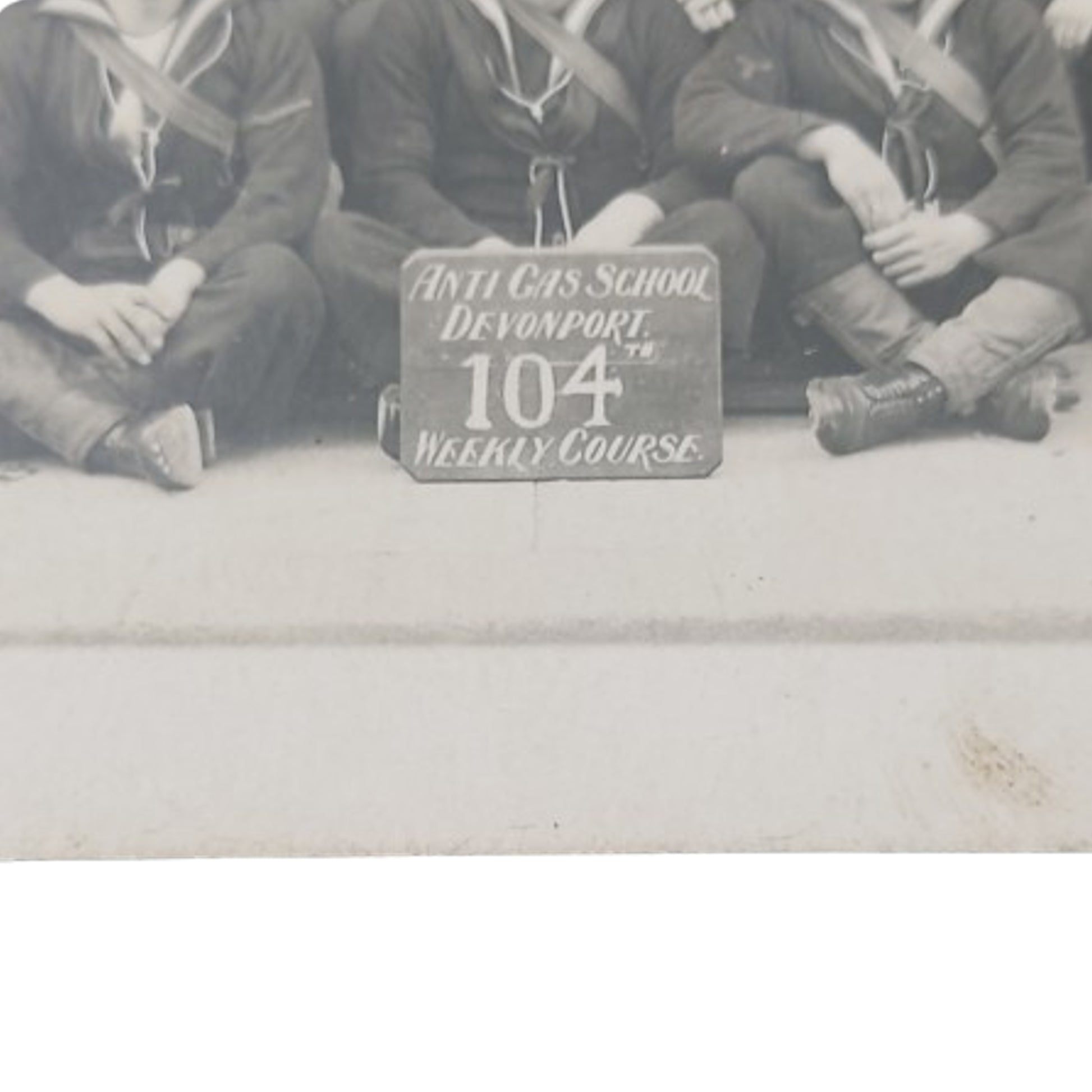 Black and white picture postcard showing a group of Naval men in uniform for the Anti Gas School, Davenport. SKU: 61682