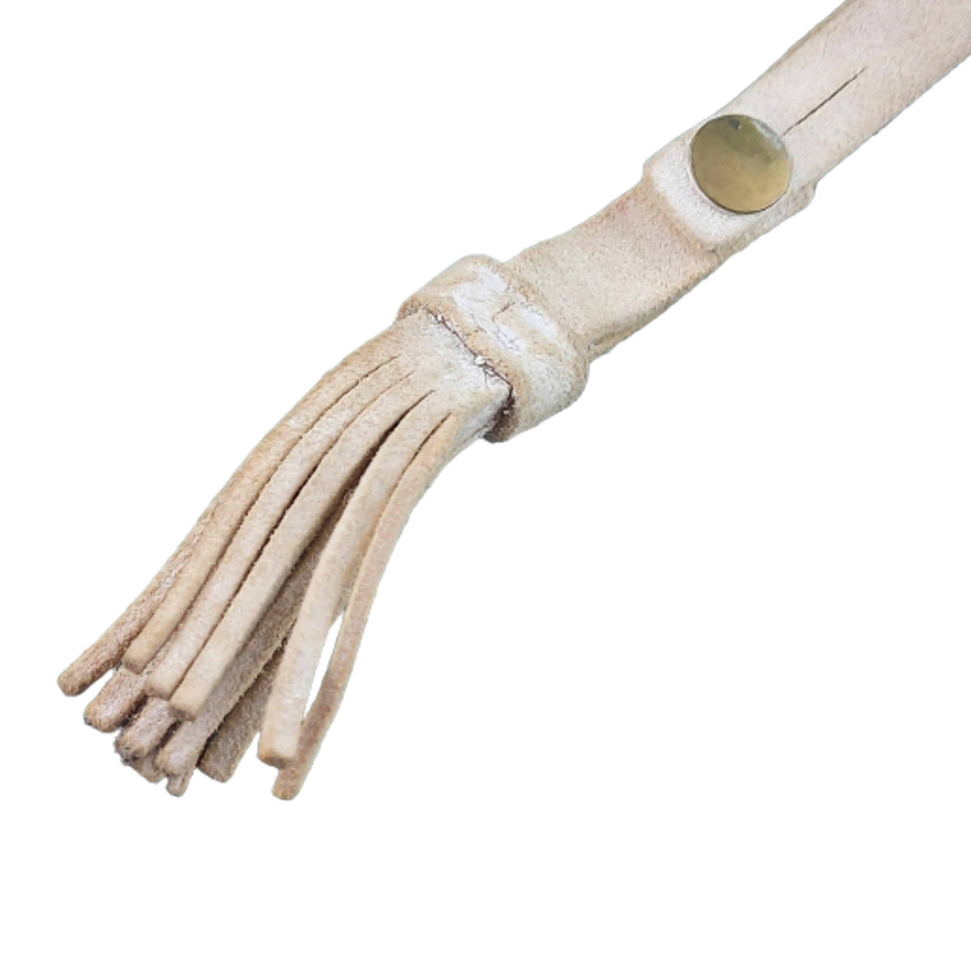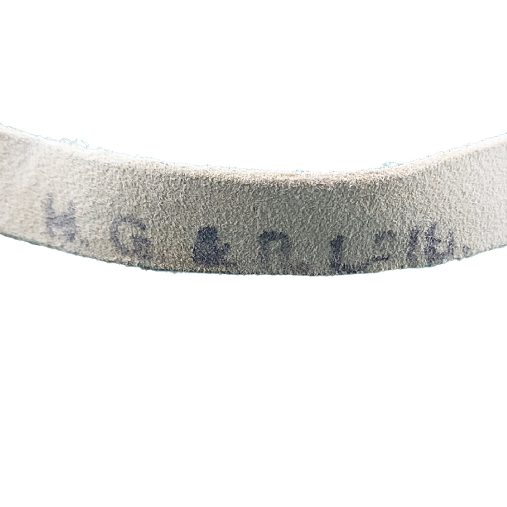 White buff leather measuring 20.5 inches total length. Maker marked and war dated to the interior with a British Broadarrow.