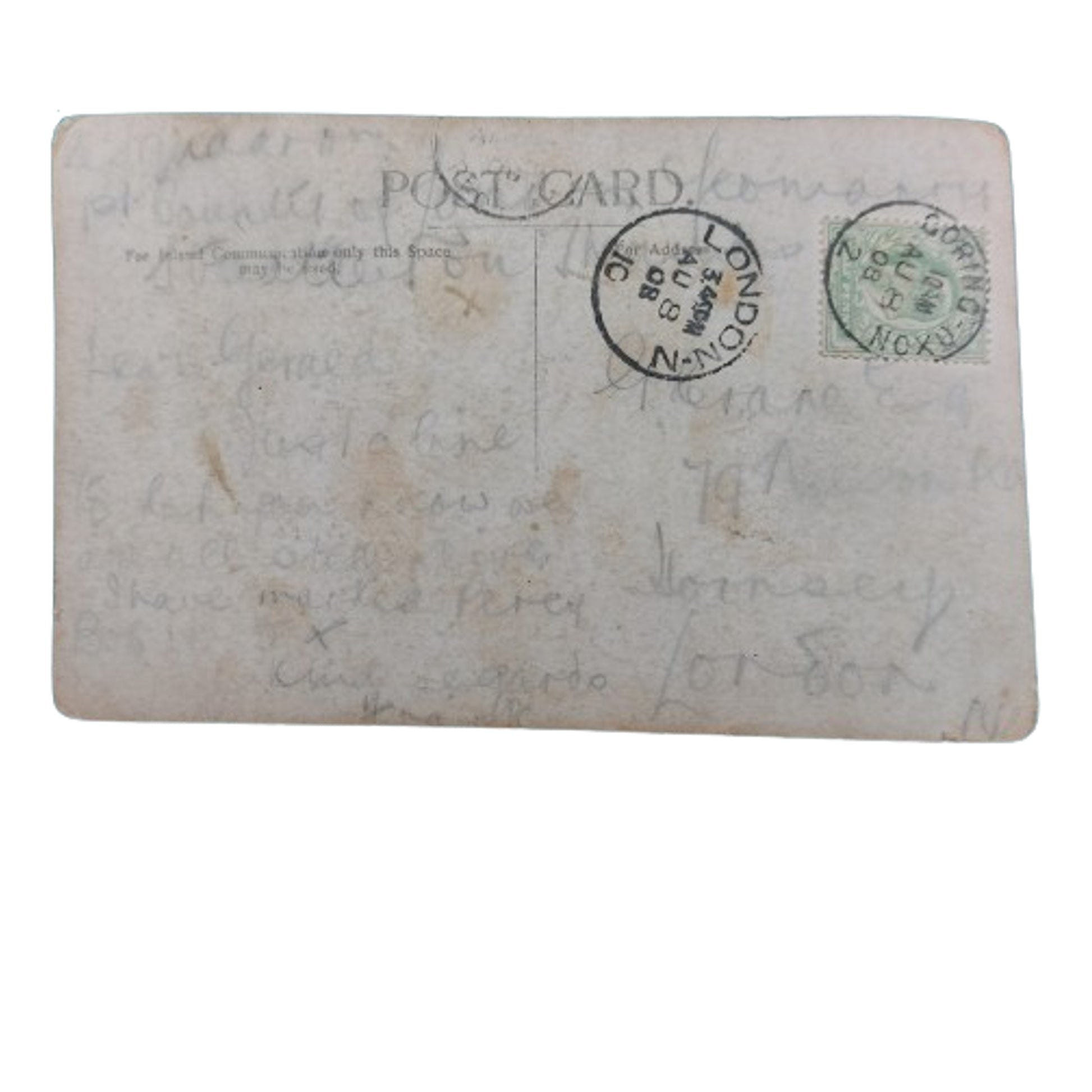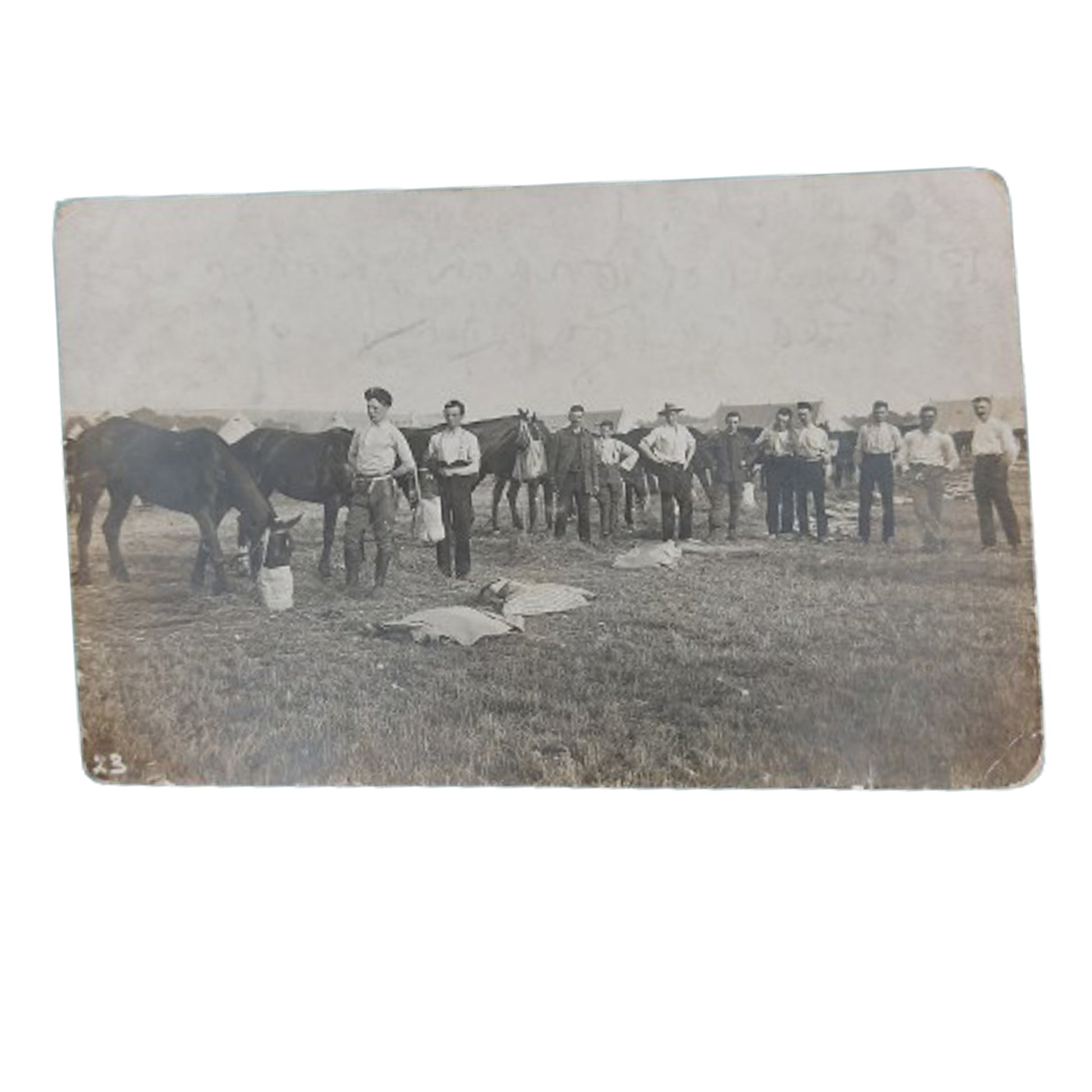 Black and white picture postcard showing British Cavalry men with their horses. Period applied hand written letter to the reverse. SKU: 61326