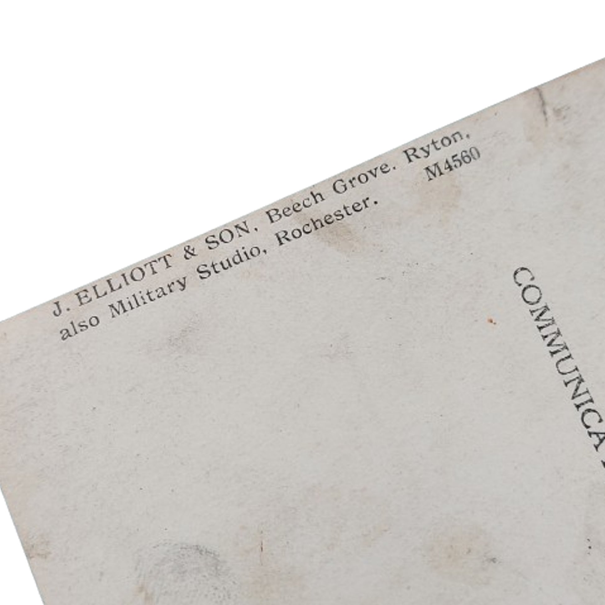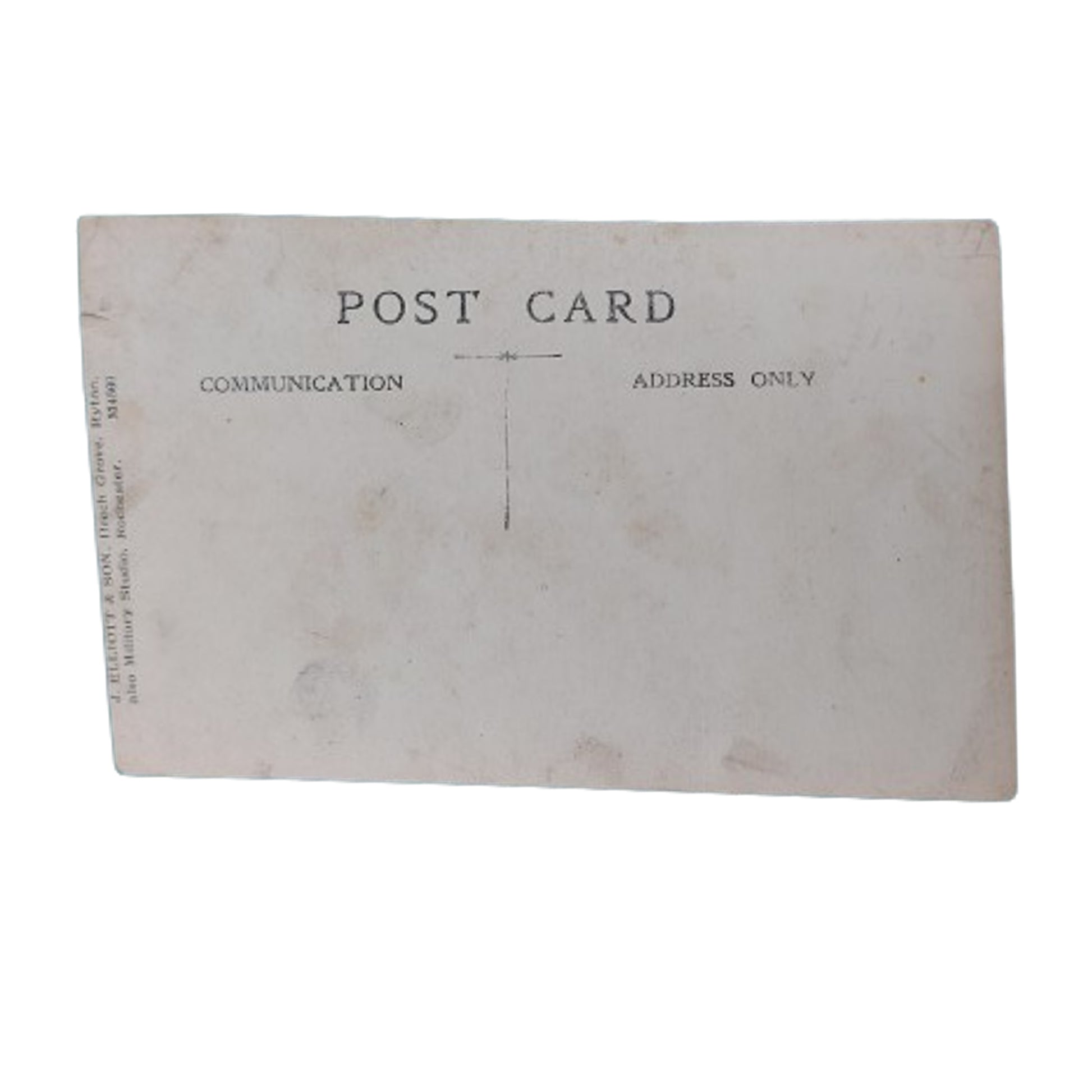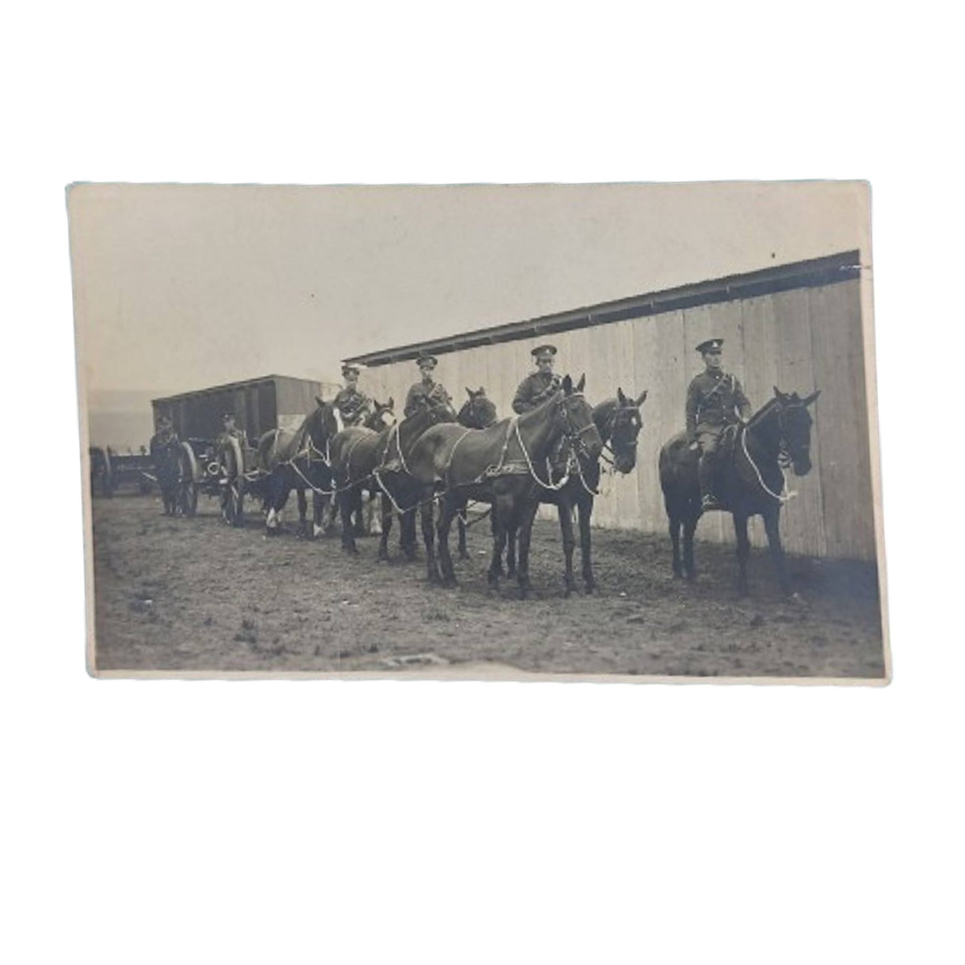 Black and white WW1 picture postcard showing a military horse train with 4 soldiers in uniform with 6 horses and a military wagon. Manufacture marked to the reverse. SKU: 61310