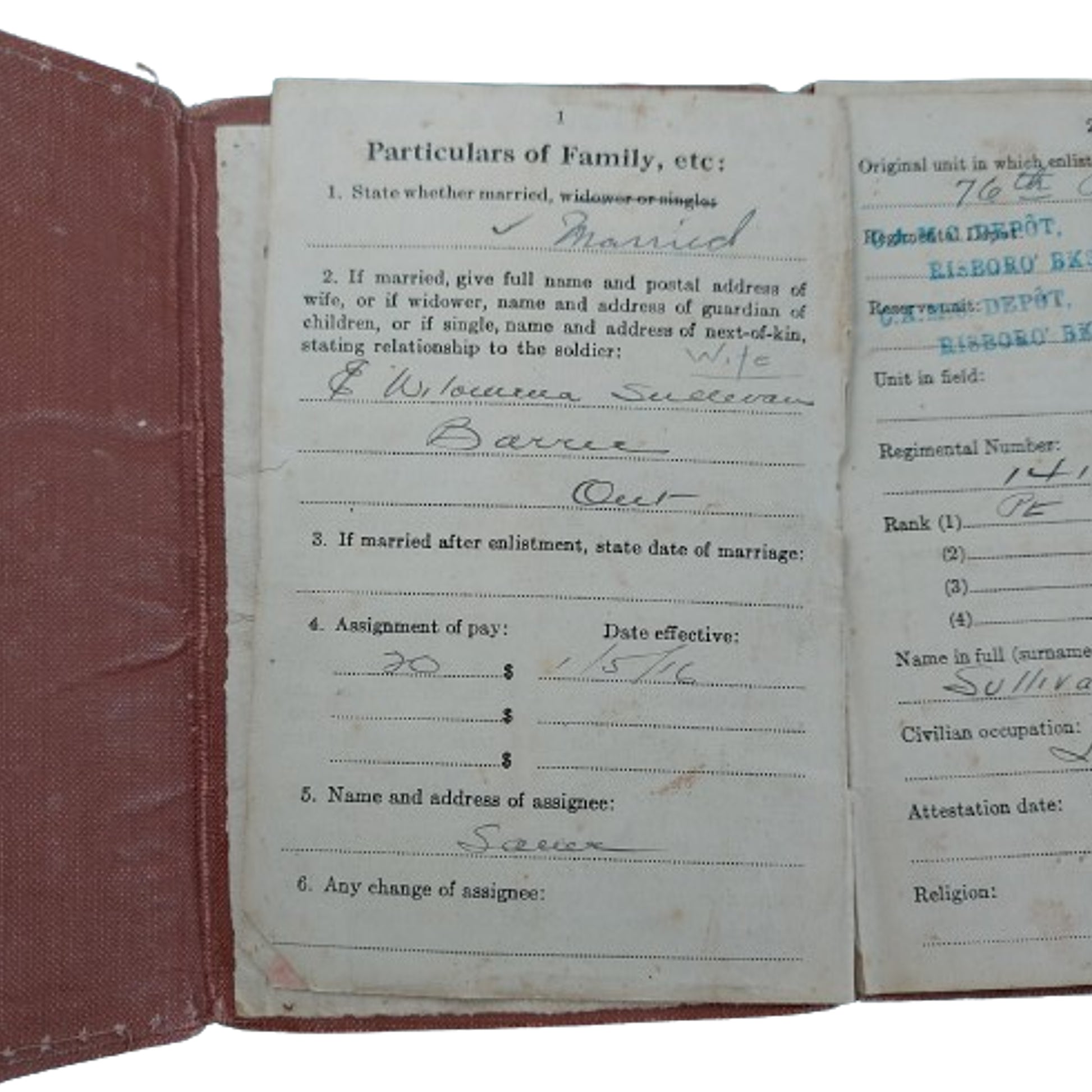 WW1 Canadian CEF Pay Books -76th Battalion Barrie Ontario