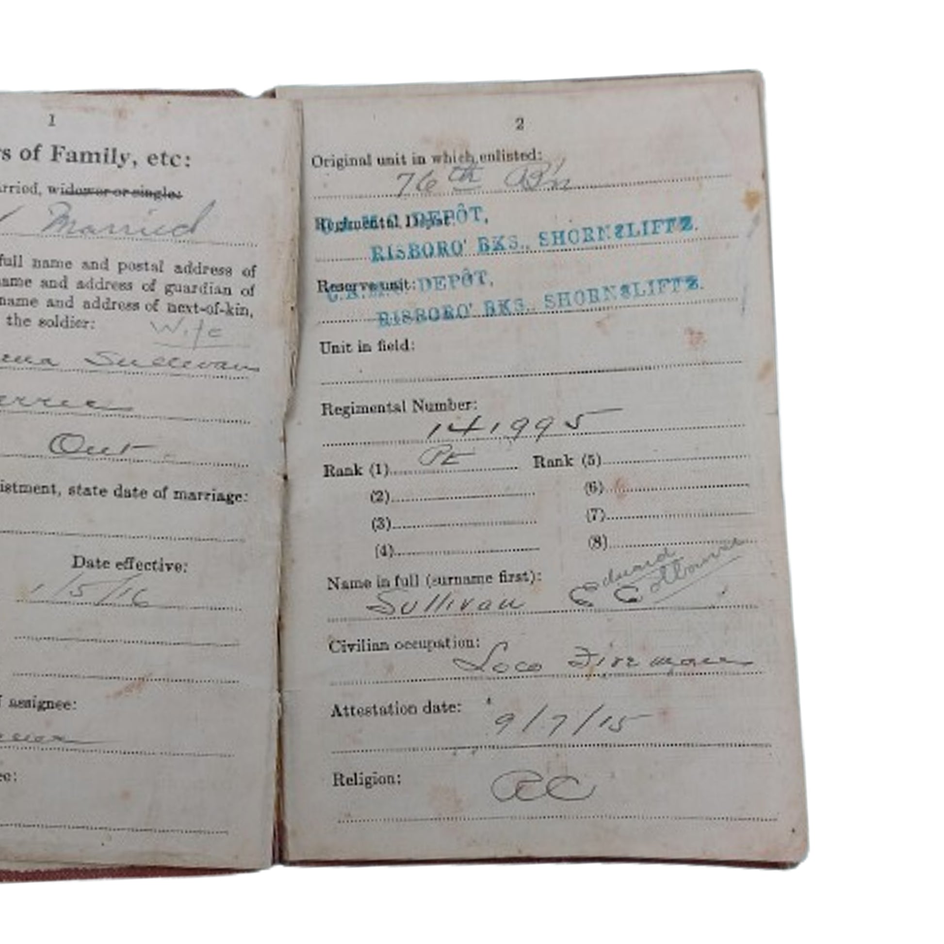 Two WW1 Canadian pay books named to 141995, Private Edward C. Sullivan 76th Battalion, Barrie Ontario. SKU: 61399