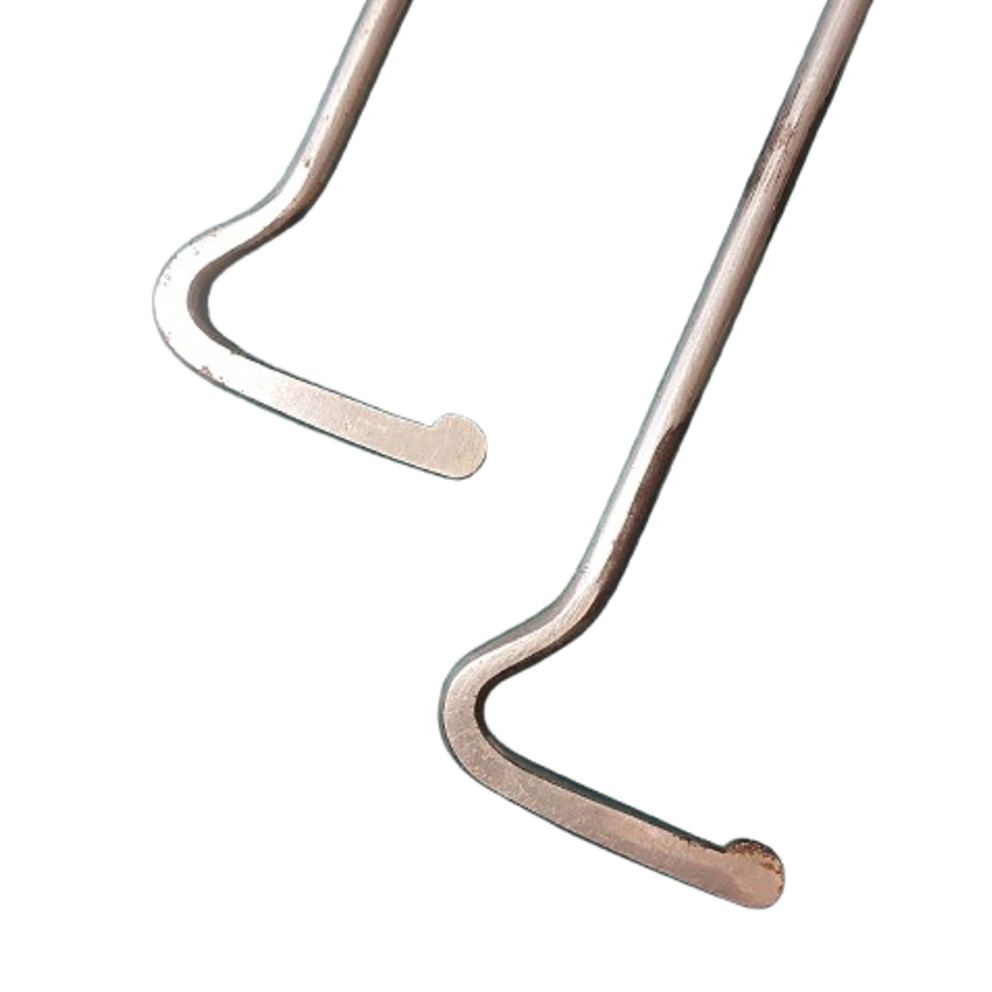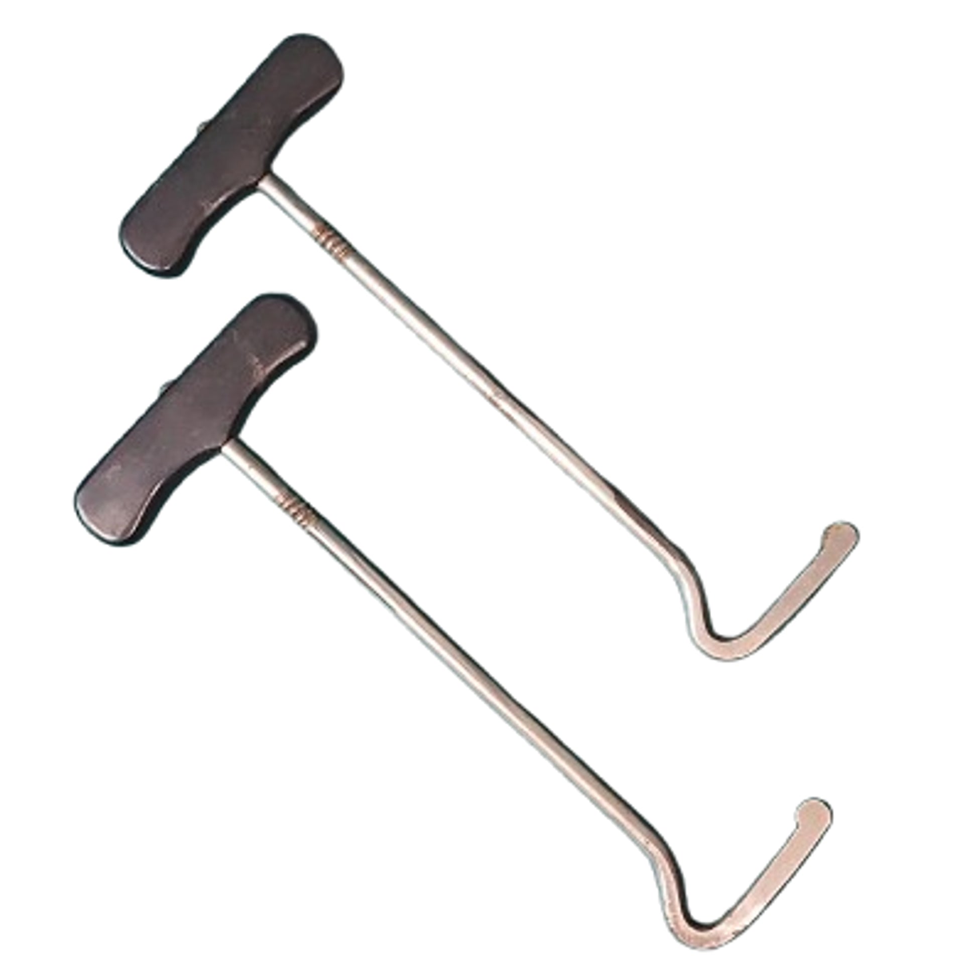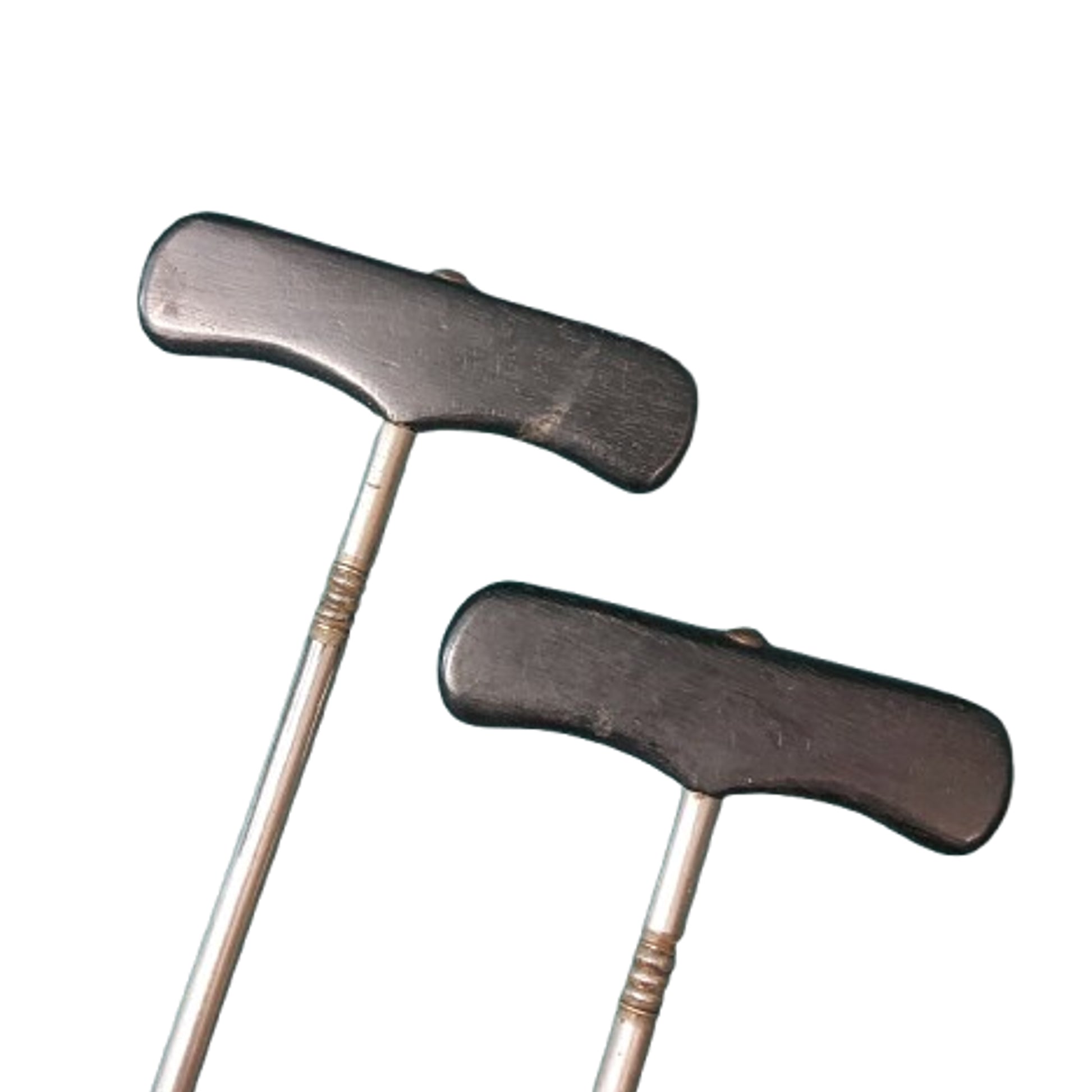 Nickle-silver finish steel boot pulls, measuring 9 1/4 inches each in total length. Matching pair with no visible markings. Very good condition overall showing light wear and use. SKU: 62517