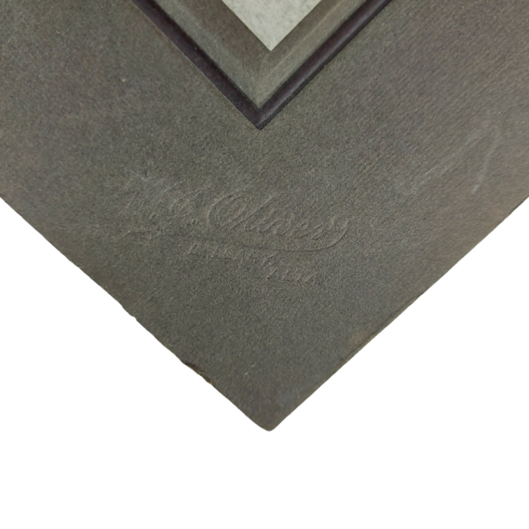 Black and white WW1 photo measuring 9 3/4 by 7 3/4 inches showing 15 men in uniform with stretchers and the Commanding Officer. General Service cap badges visible on the visor caps. On matte board, measuring 12 3/4 by 12 inches. Marked in the corner by photographer, Calgary Alberta.
