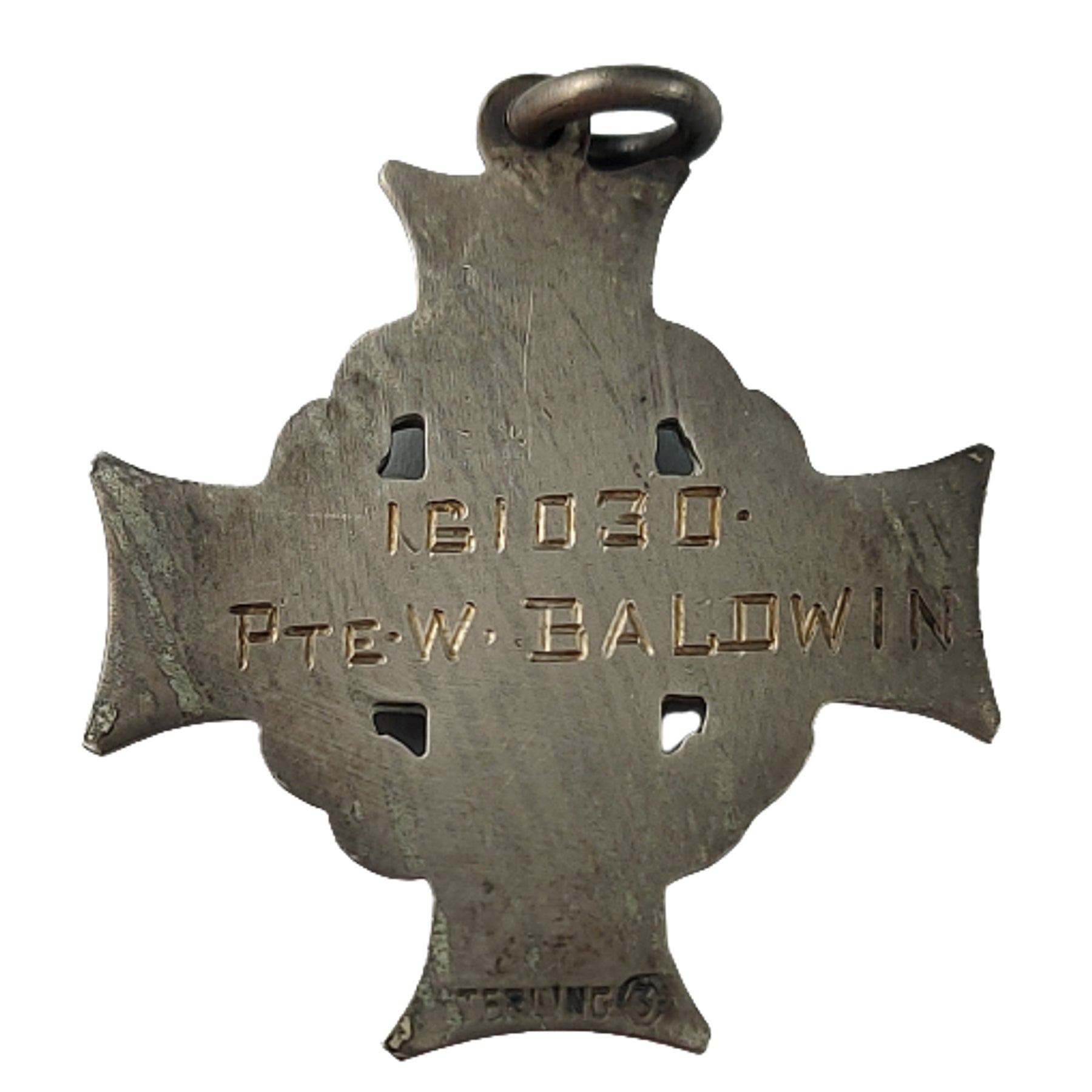 Silver Memorial Cross in case of issue. Correctly named to 161030, Pte. William Baldwin of the 82nd Battalion, Calgary Alberta. KIA on 18-11-16.