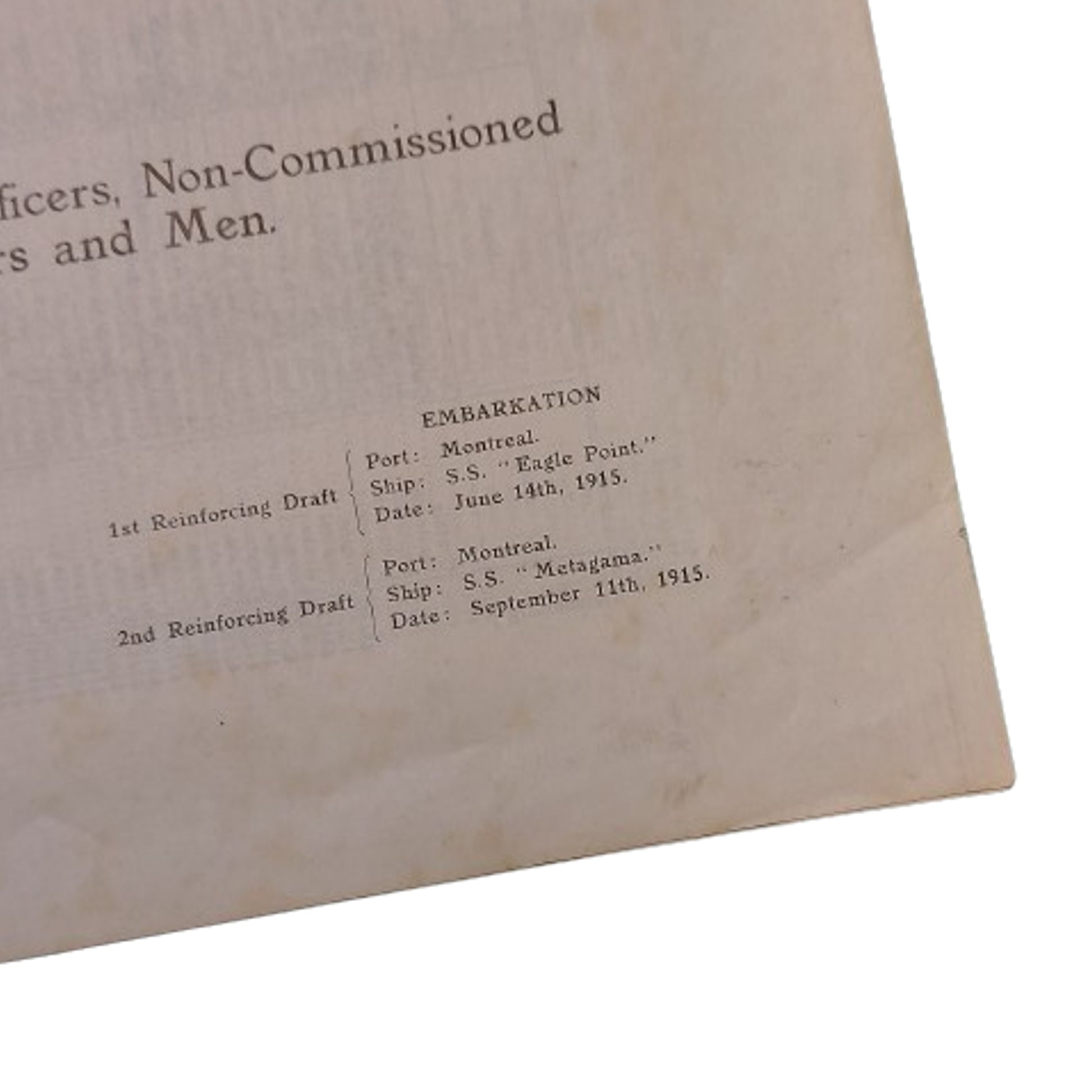 WW1 CEF 50th Battalion Reinforcing Drafts Nominal Roll 1915 -Calgary Alberta