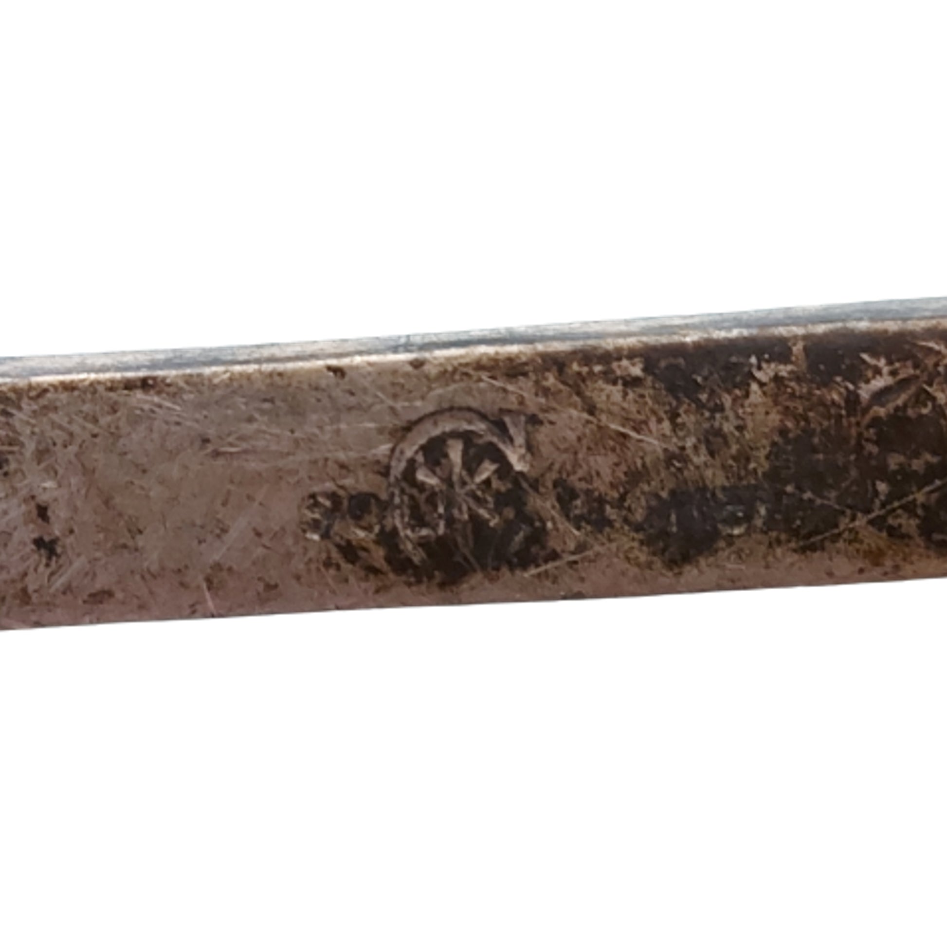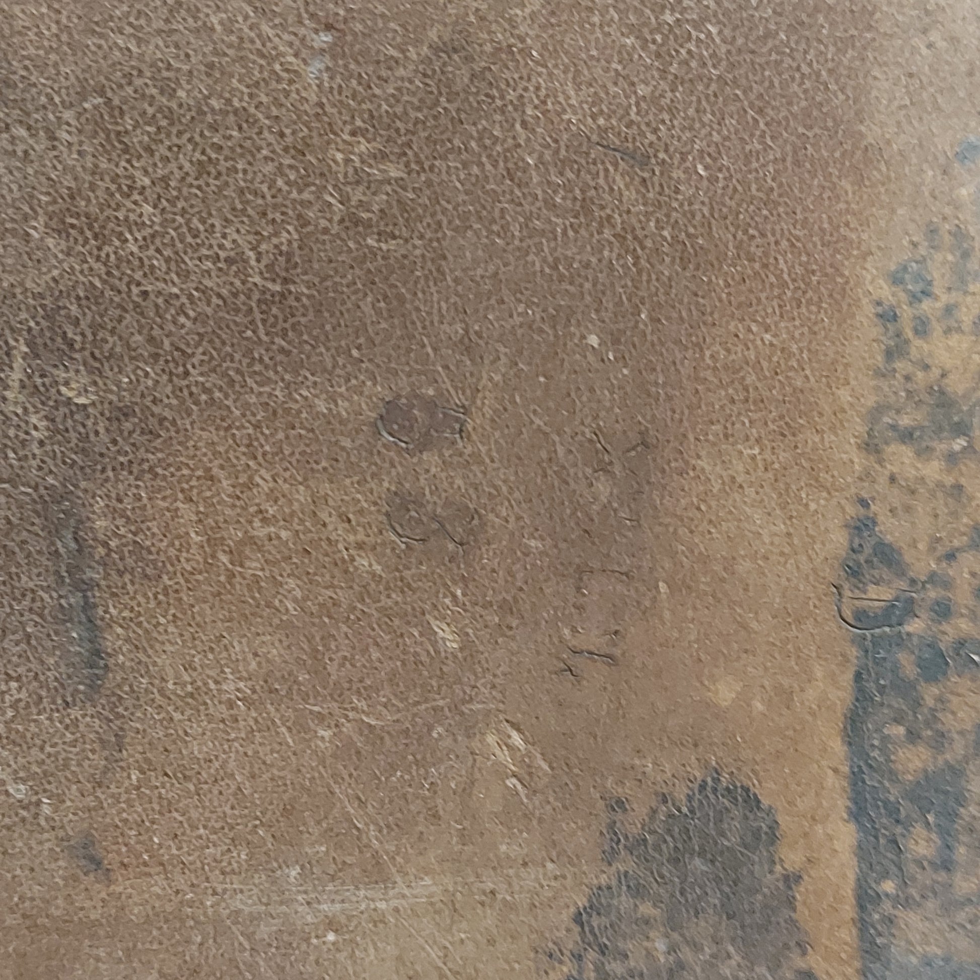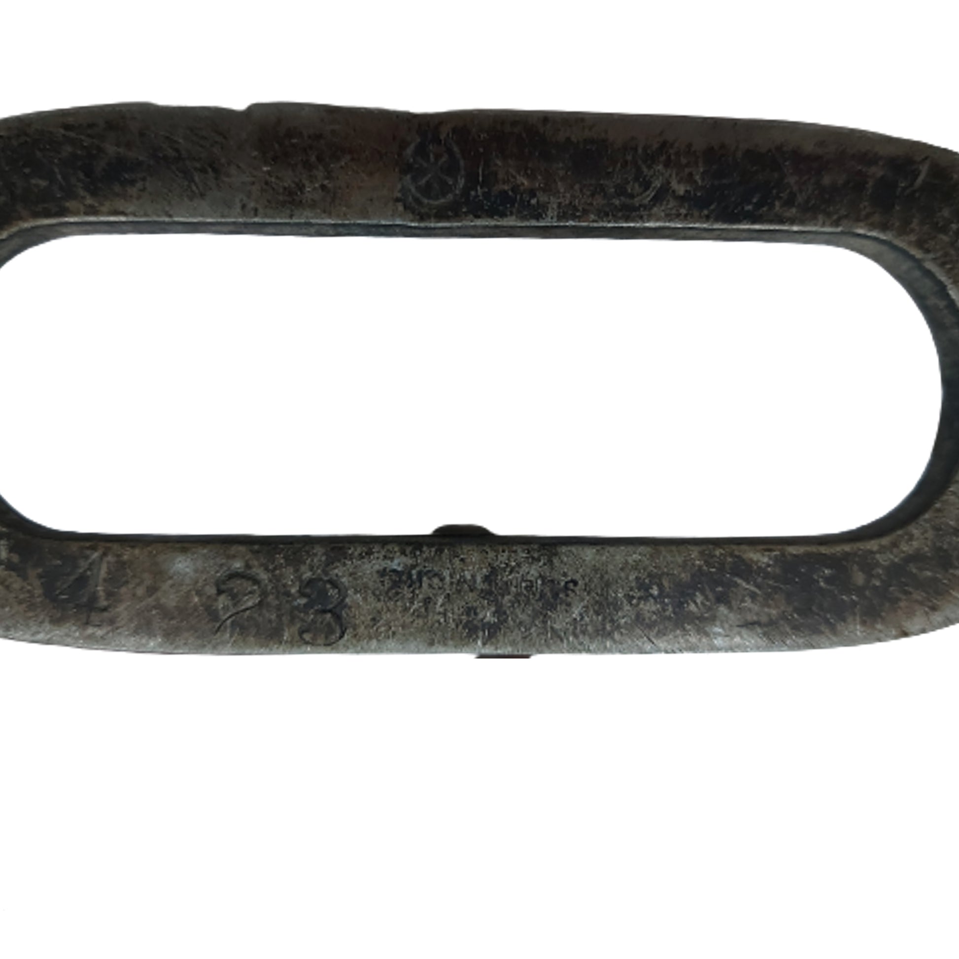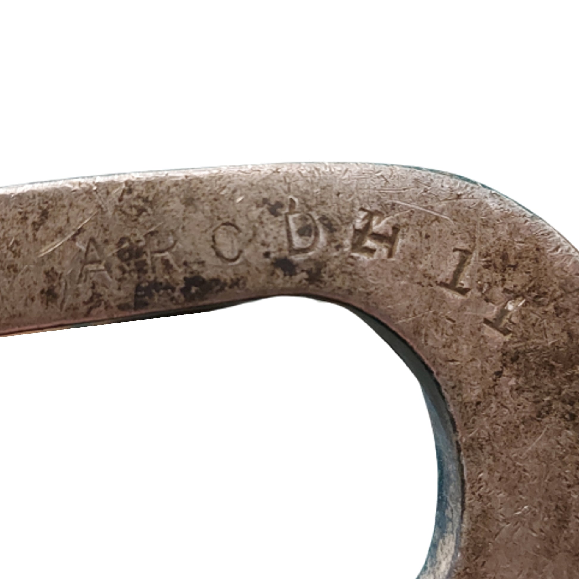 Leather construction on a wood tree with brass fixtures. Nickel silver stirrups that are C-Broadarrow marked and stamped "A.R.C.D. " and dated 1915 with the number '4 23" to one of the stirrups. One leather fender is also stamped with the number "53". Saddle appears complete and the tree is solid. Very good original condition overall.