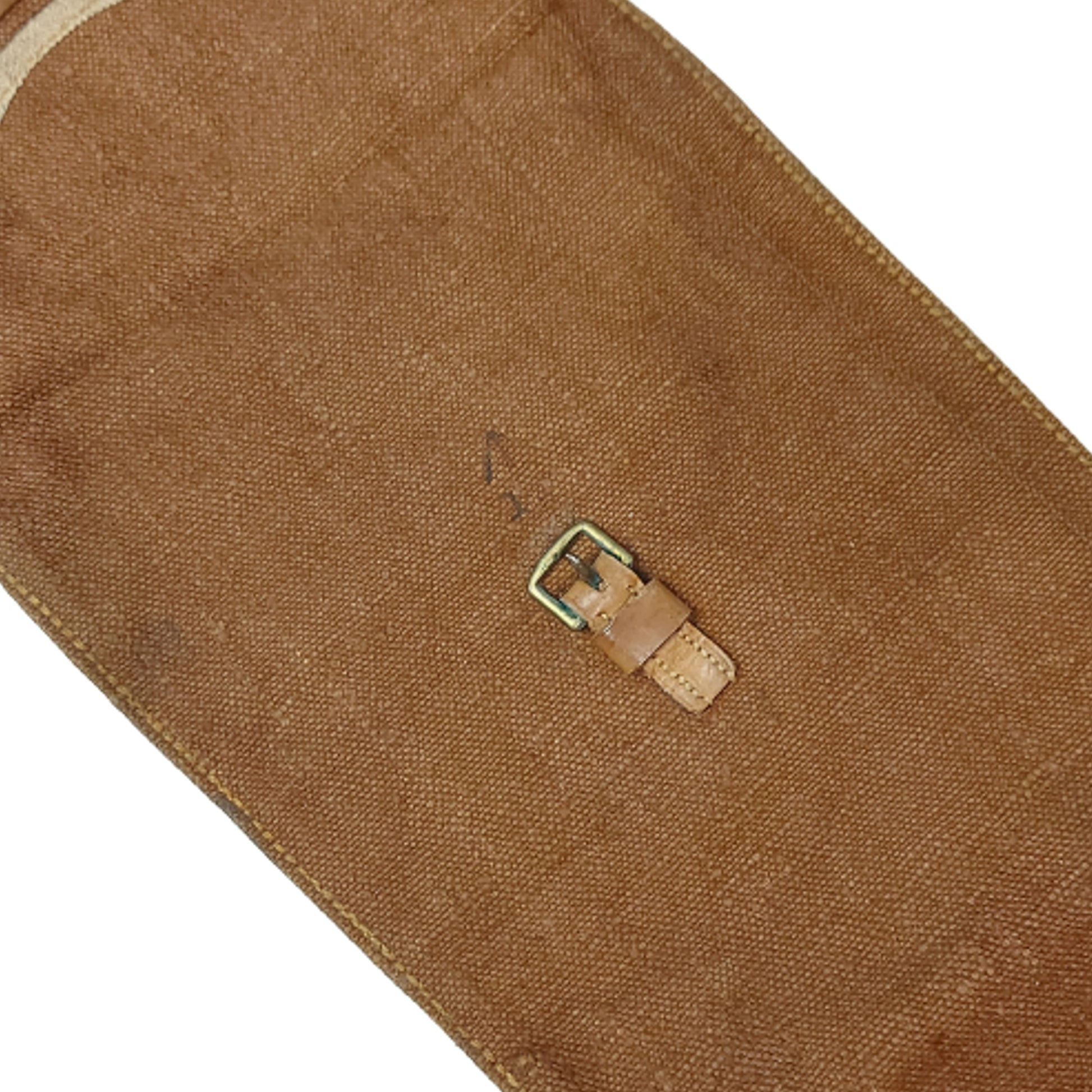 Canvas type material with leather trim and fixtures made to accept a service rifle up to 45 inches in total length. British Broadarrow marked to the exterior and maker marked to the interior flap closure, and dated 1915.