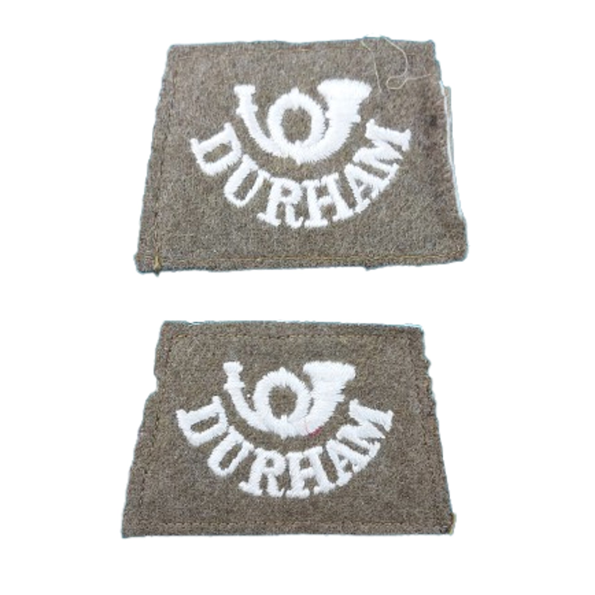 Matching pair of WW2 WW2 British Durham Light Infantry Uniform Slip Ons, embroidered on cloth with retaining material straps to the reverse. Both show light wear to the reverse. SKU: 63102