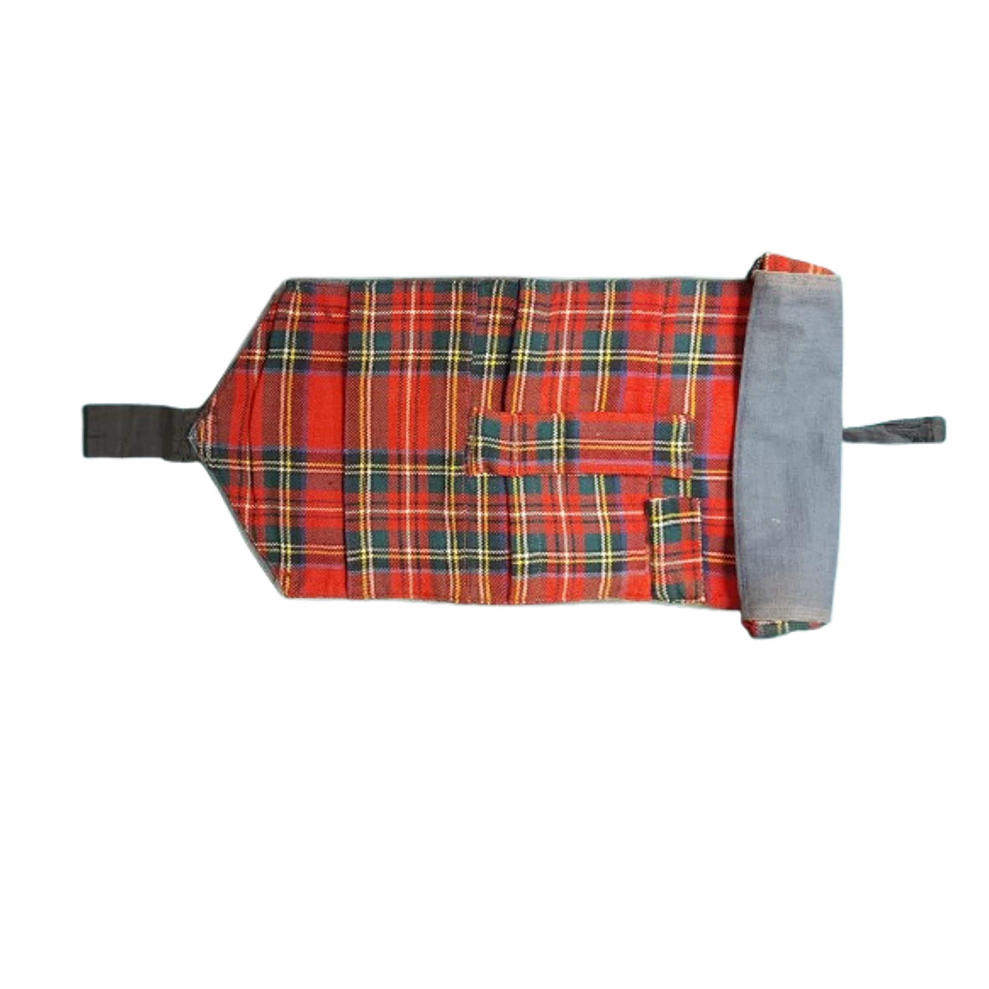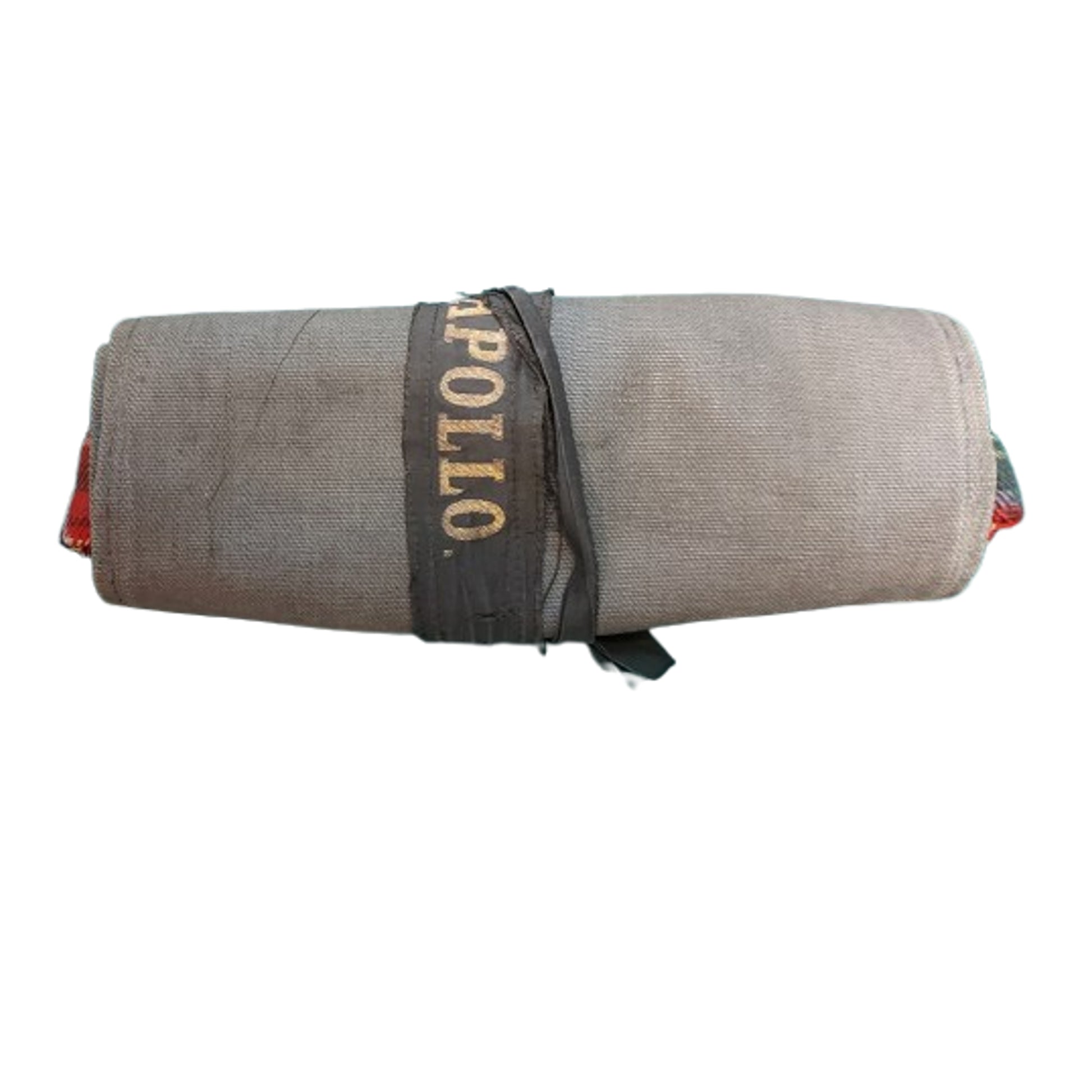 Navy blue canvas material construction, with soldier applied wool plaid lining and compartments to the interior. HMS Apollo cap tally applied and used as a tie strap. No contents present. The HMS Apollo was an Abdiel class mine layer of the Royal Navy that played a significant role during WW2 in mine-laying operations in support of Allied Forces. SKU: 63249