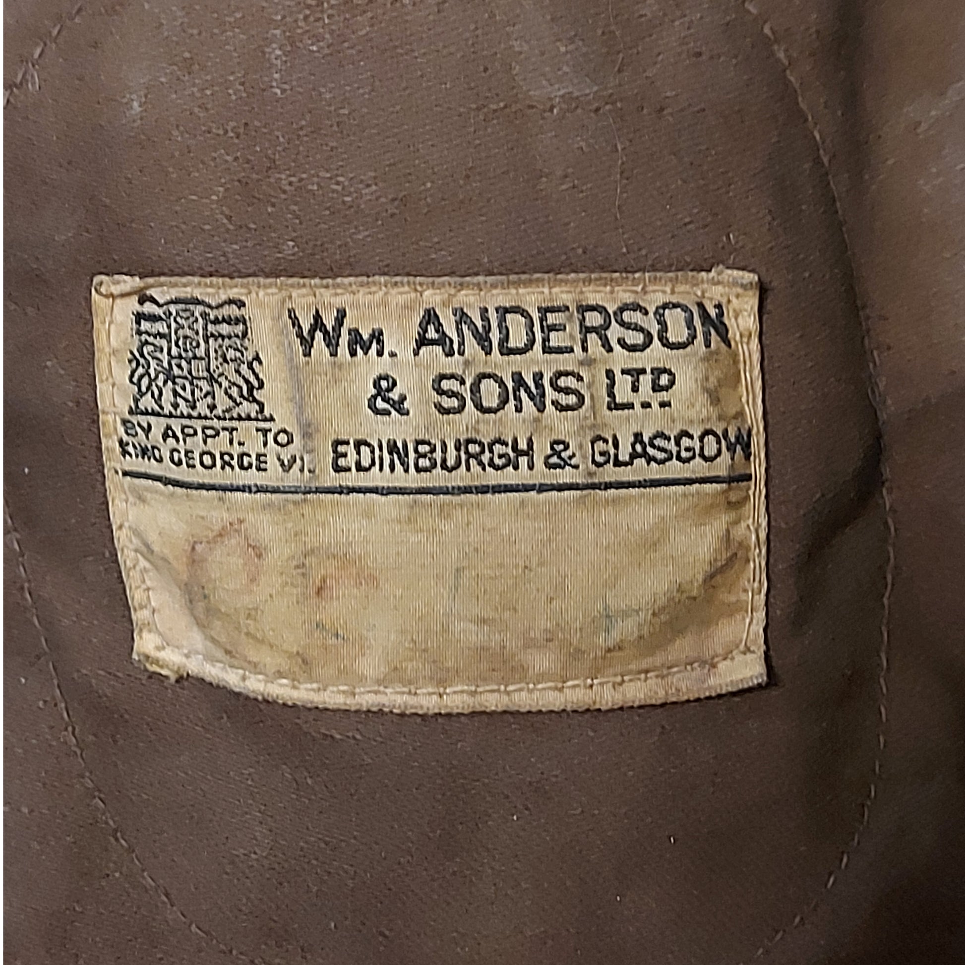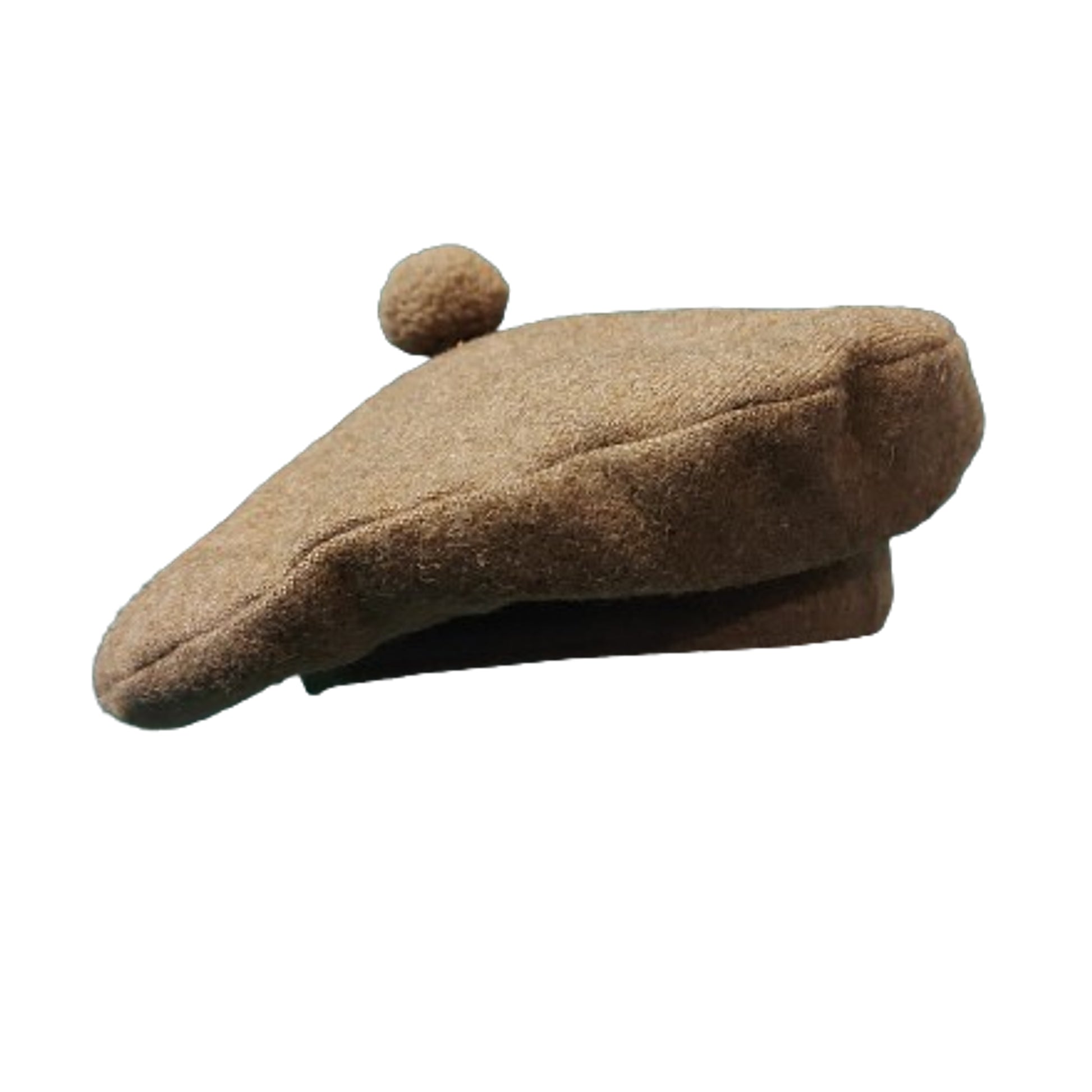 a British made, heavy wool material balmoral with torrie to the top. Interior brown material lining with manufactures label in place, Wm. Anderson & Sons Ltd. Edinburgh & Glasgow. Approx. size 7 1/4. SKU: 63412