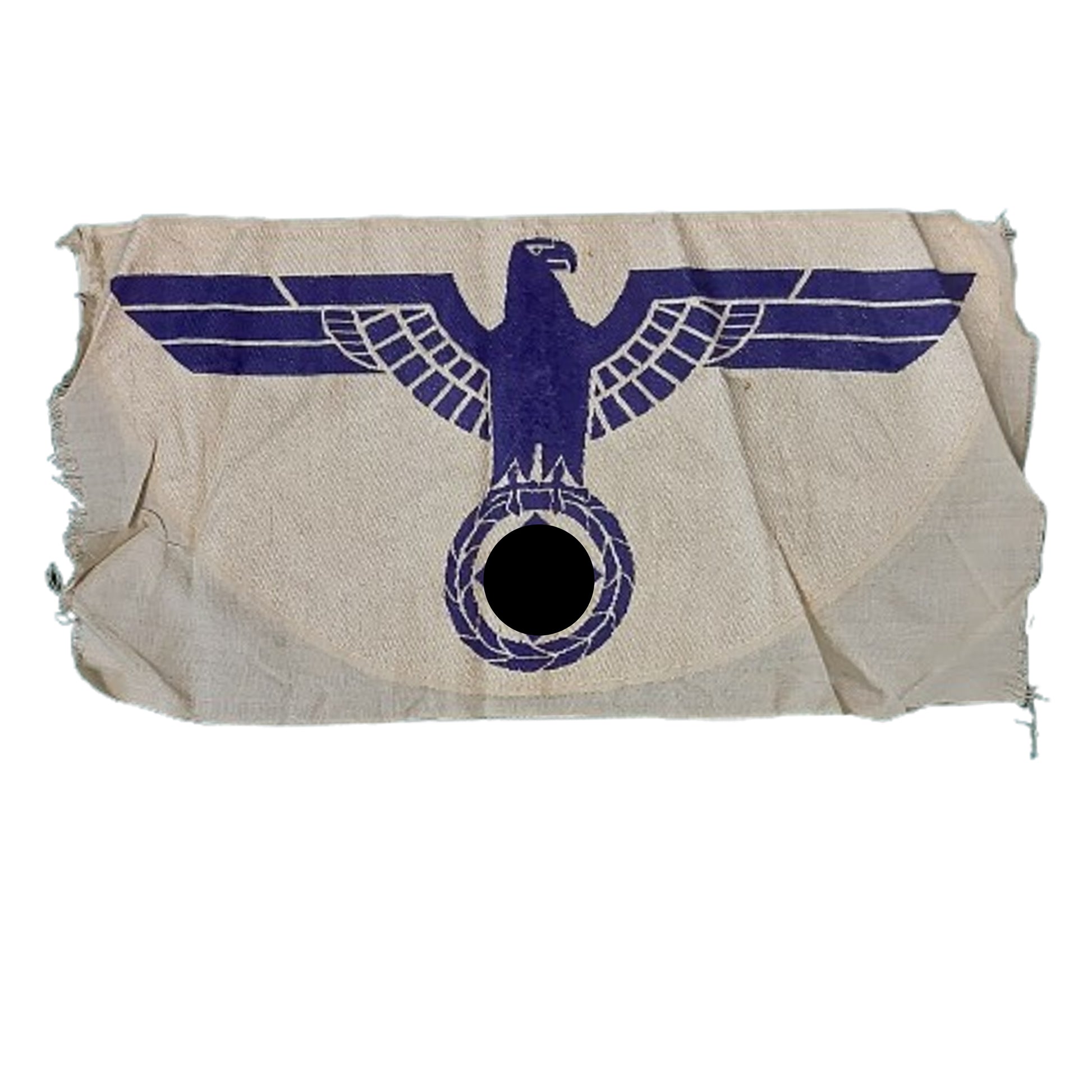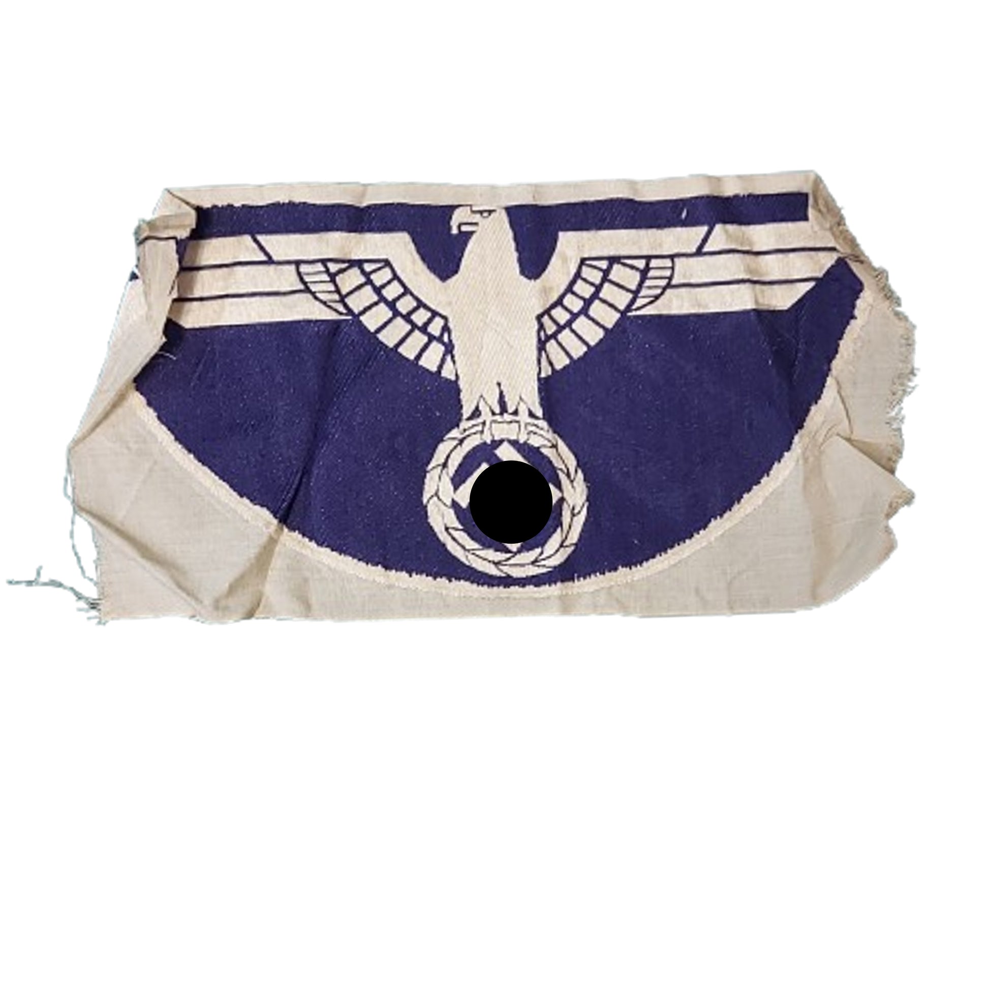 Cornflower blue, machine woven, national eagle with symbol below embroidered on cloth. Measures 10 1/2 by 5 1/4 inches. SKU: 63465