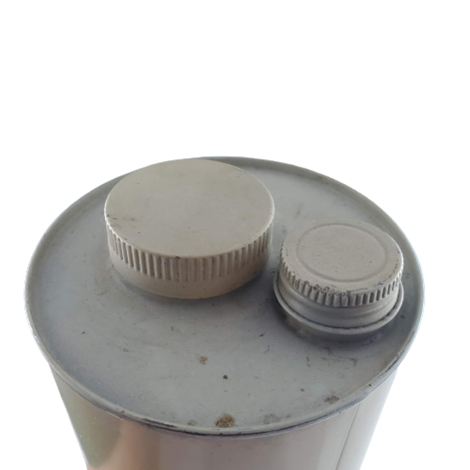 Metal cannister with removeable top caps, measuring 8 inches in height and 3 3/4 inches in diameter. Maker marked to the underside and dated 1943 with a British Broadarrow.
