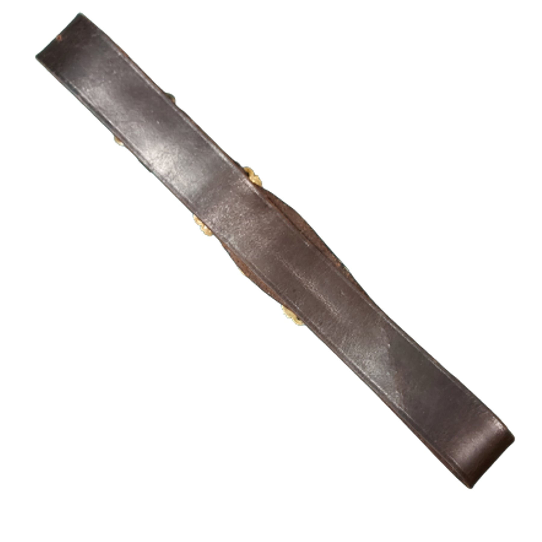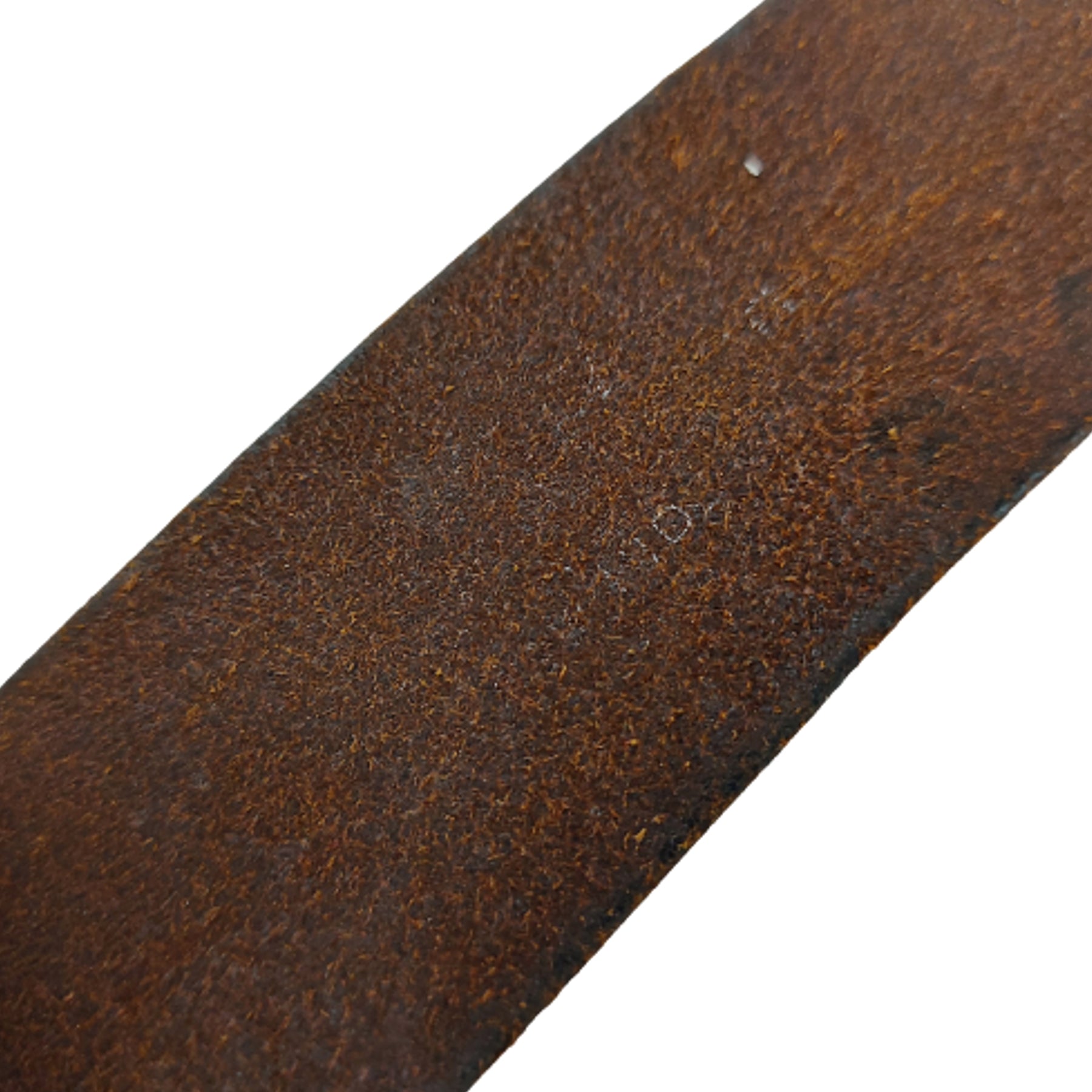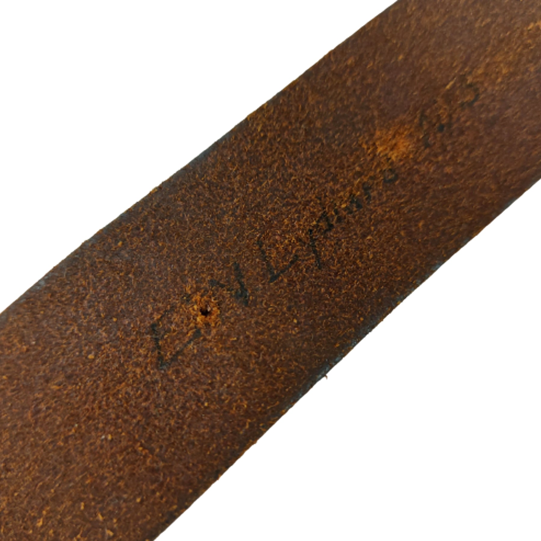 Maker marked leather belt with Scully Montreal bi-metal buckle in place. Hand applied naming to the reverse of the belt. 28 inch waist measurement. SKU: 58978