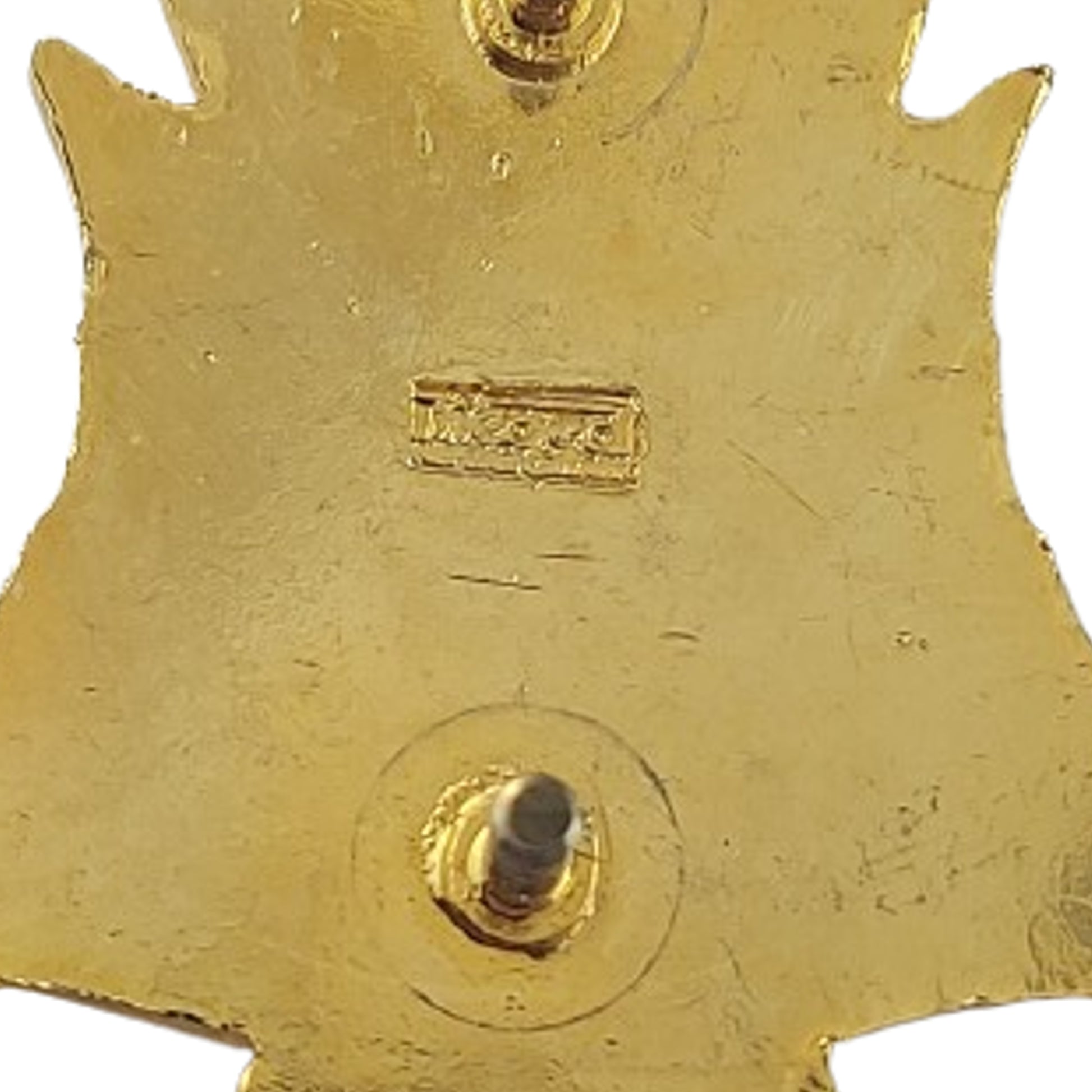 Bi-metal, solid flat back cap badge with screw post fasteners. Maker marked to the reverse. SKU: 62876