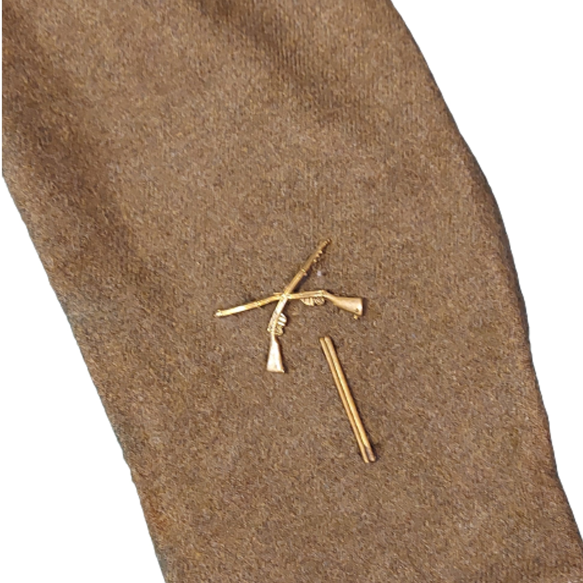 Pattern 1918 wool tunic, button 4 pocket front with all brass CANADA buttons in place. Matching brass collar badges with the number 1 over CGA (Canadian Garrison Artillery) over brass CANADA shoulder titles to each epaulette. WW1 Artillery brass badge to the upper portion of the left sleeve with a brass crossed rifle over a single brass wound badge to the cuff area of the sleeve. Green material lining with a large Canadian C-Broadarrow stamp. In excellent condition showing very little wear and no damage. SKU: 59867