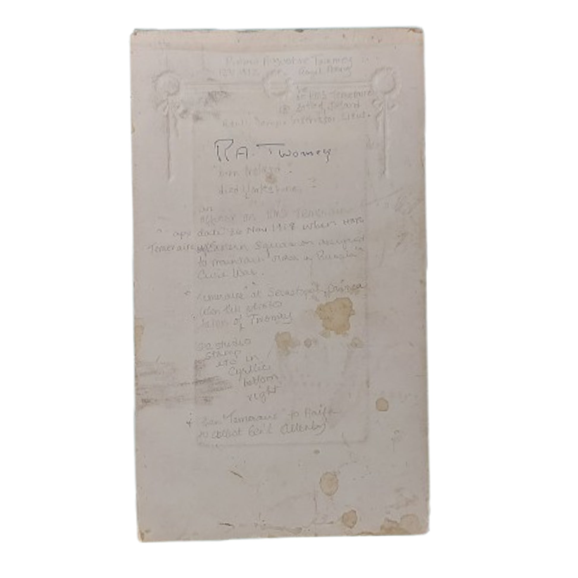WW1 British Royal Navy Photograph on Matte Board R.A. Twomey HMS Temeraire