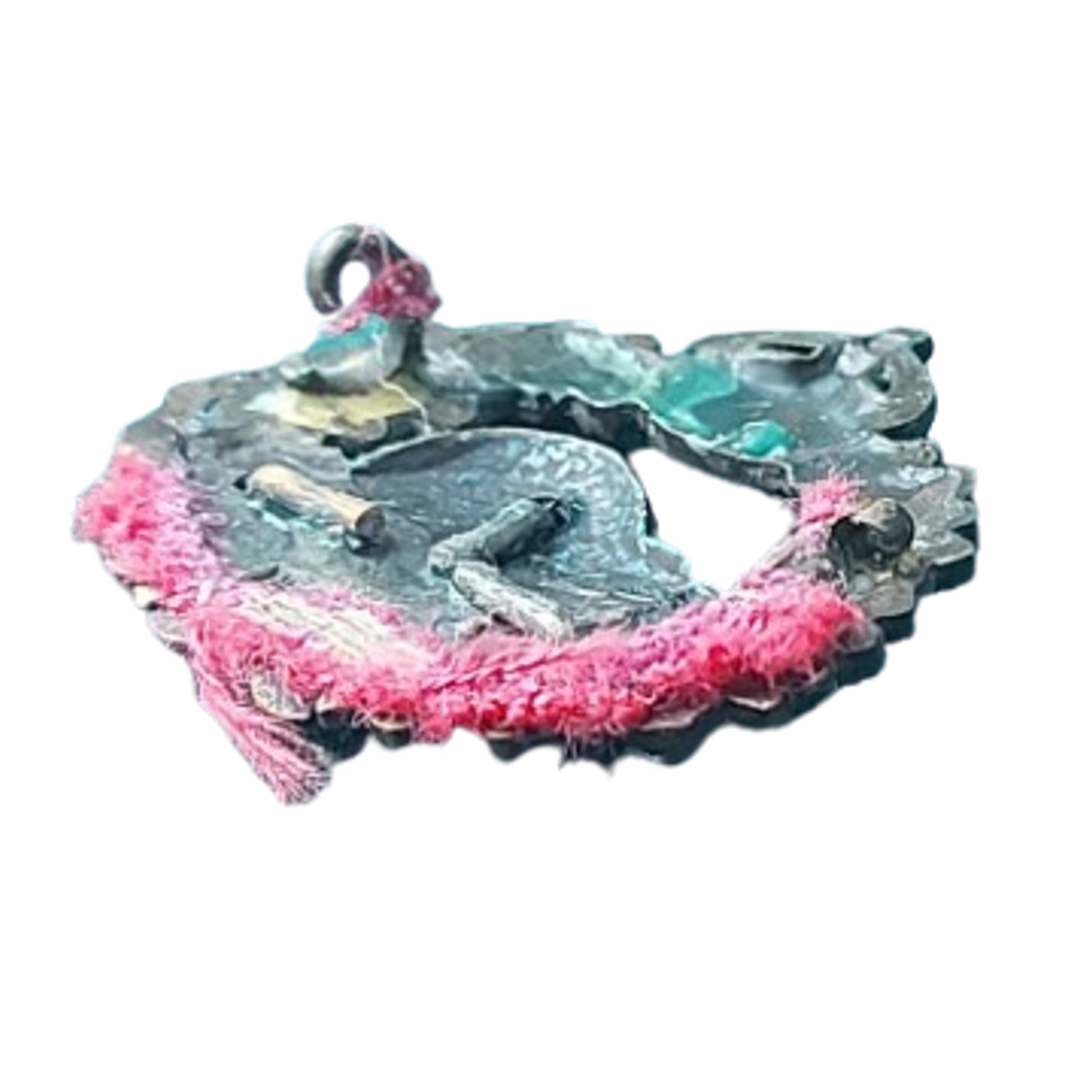 Bi-metal, multi piece construction officers collar badge or sweetheart, facing left. Pinback fastener that is missing the pin. Removed from display board. SKU: 63438