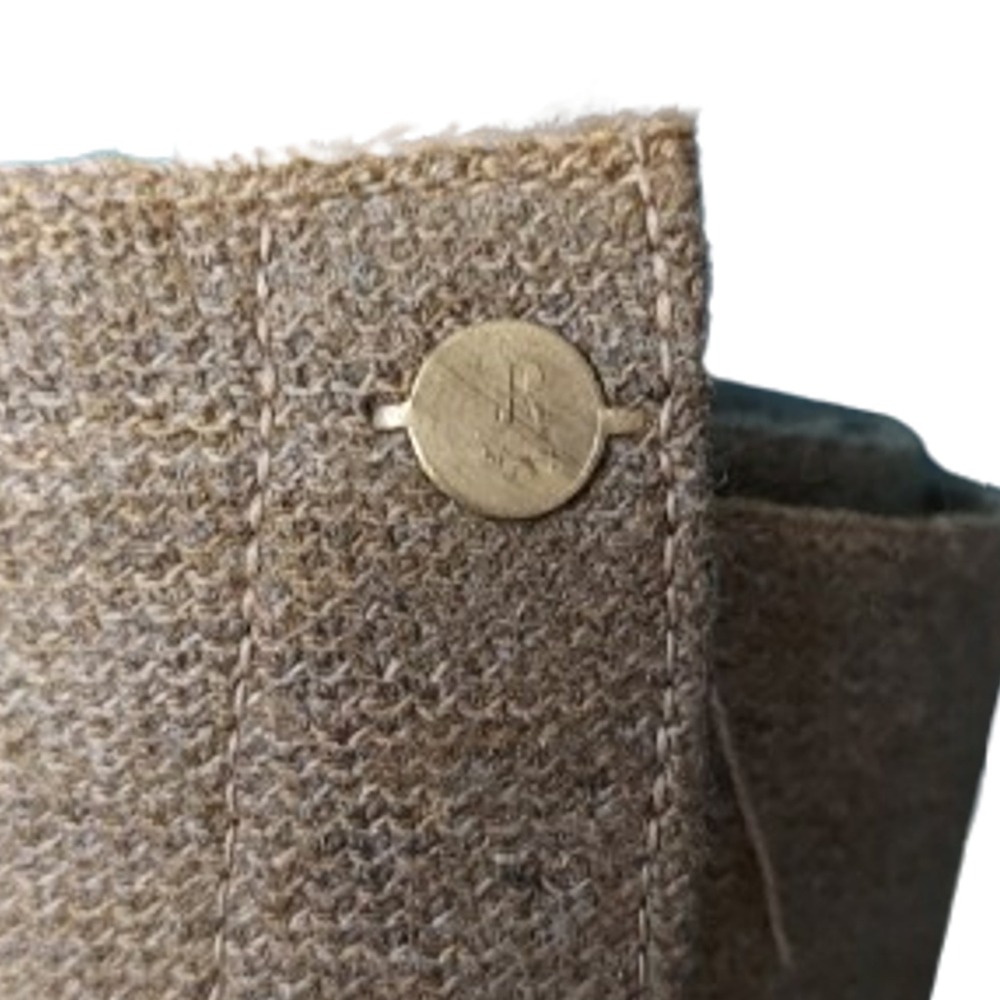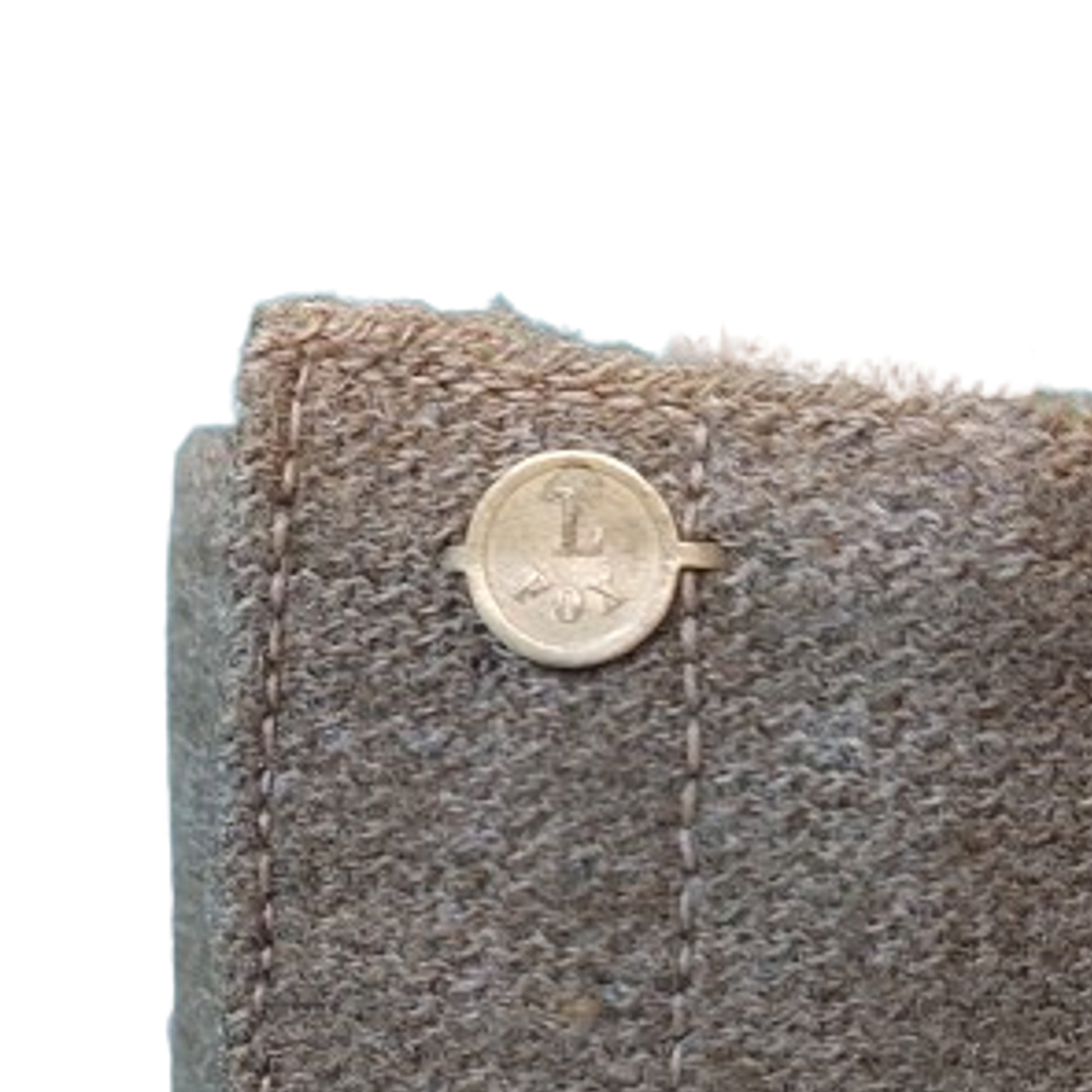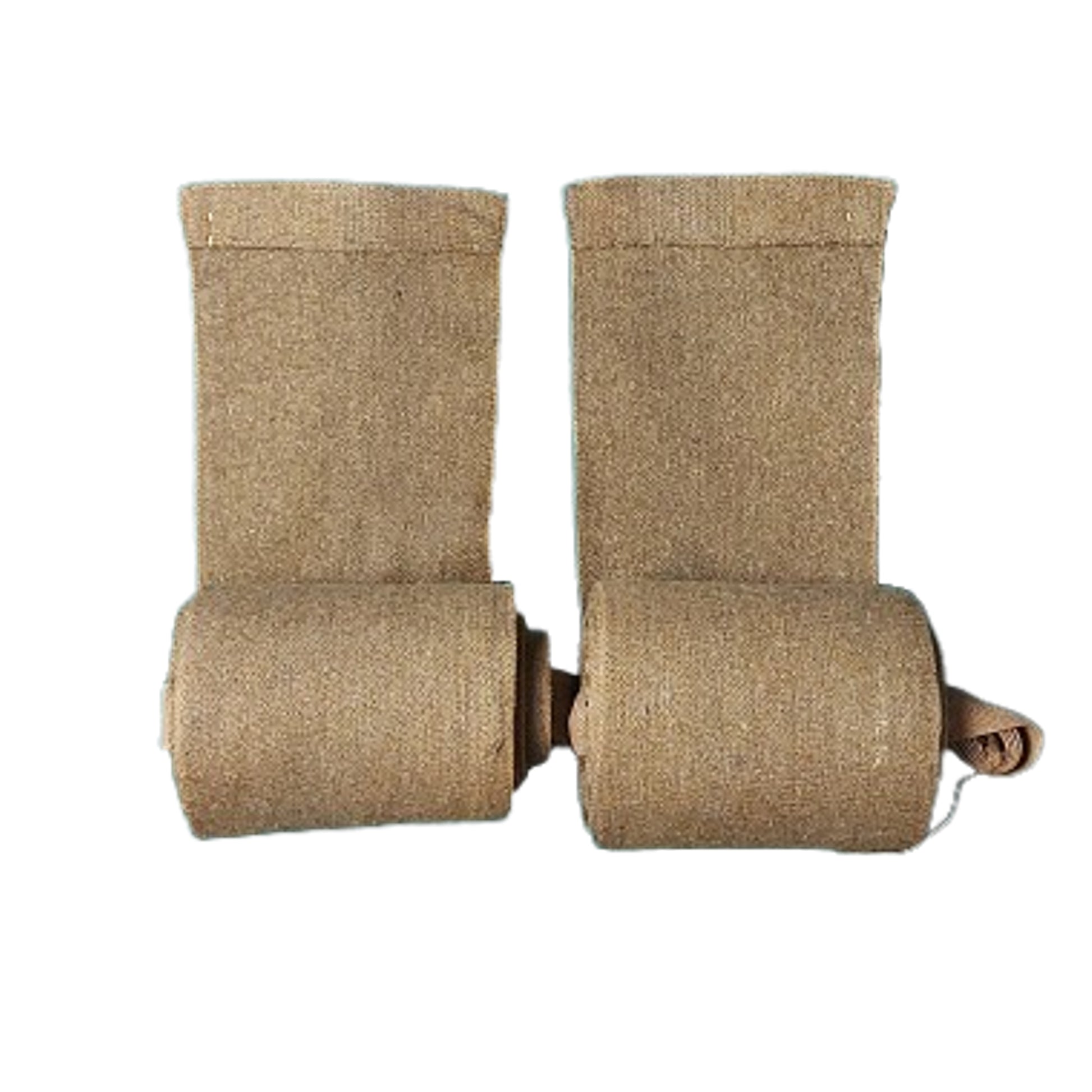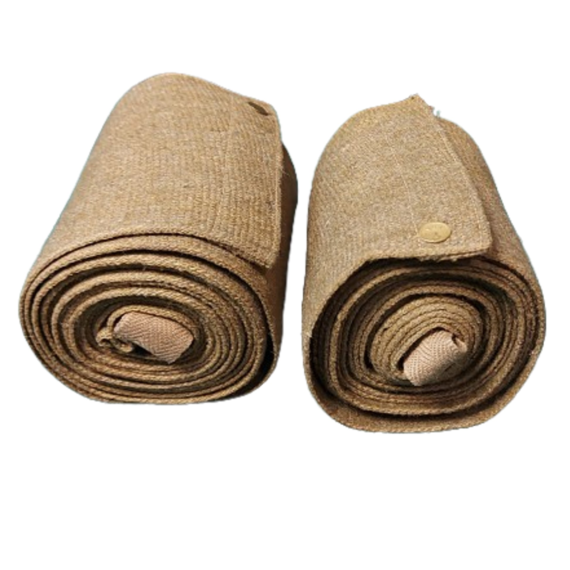 Matching pair constructed of woven wool material with a brass button to each signifying left and right. Full length with each having the tie straps in place. No visible markings with some light moth nips being present. SKU: 63029