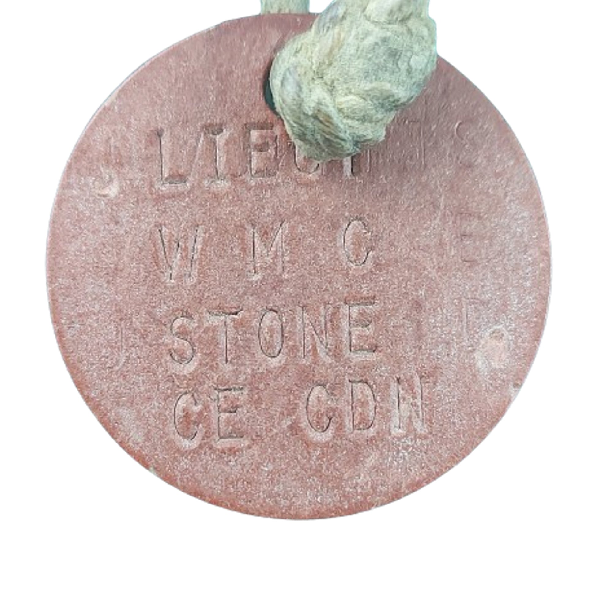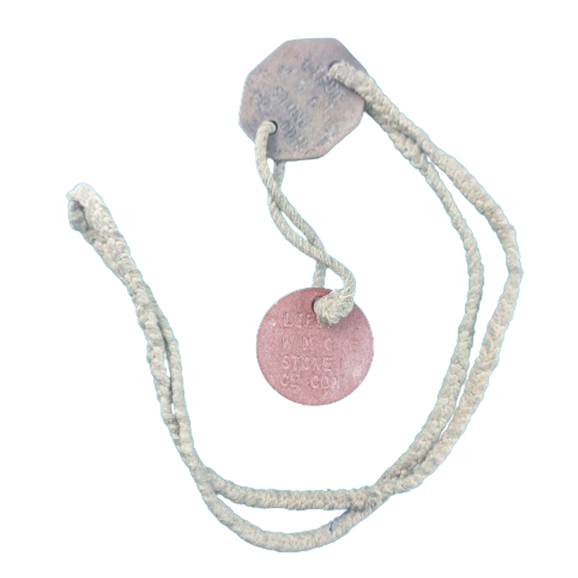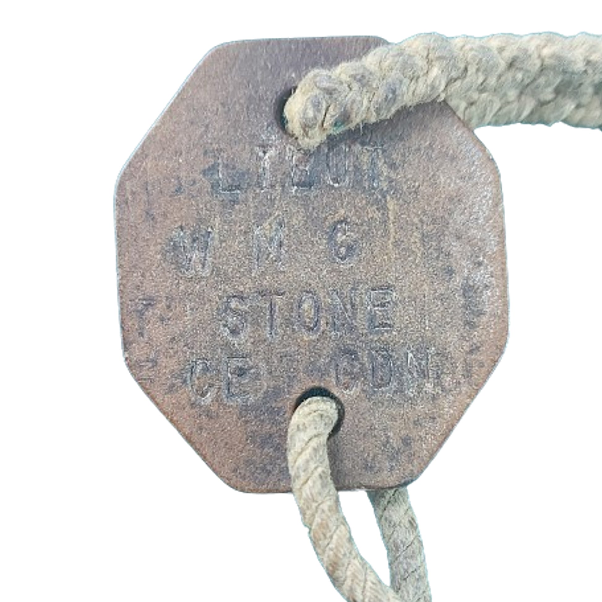 Pair of impressed fiber I.D tags named to Lieut. W.M.G. Stone, CE CDN. Suspended by the original braided cotton cord. SKU: 61195