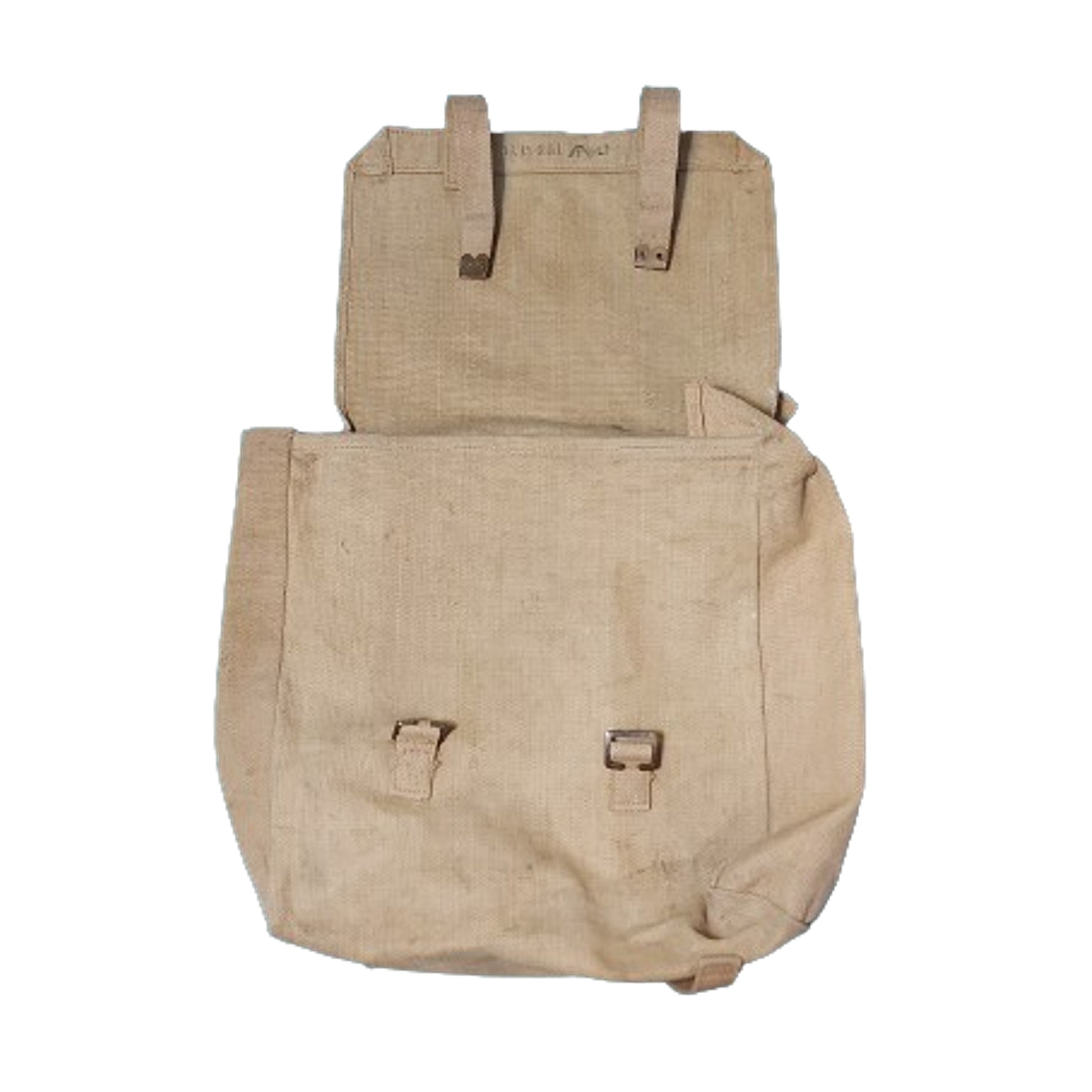Webbed construction with brass fixtures. Maker marked to the interior and dated 1943 with a British Broadarrow. Shows war time use and wear. SKU: 61554
