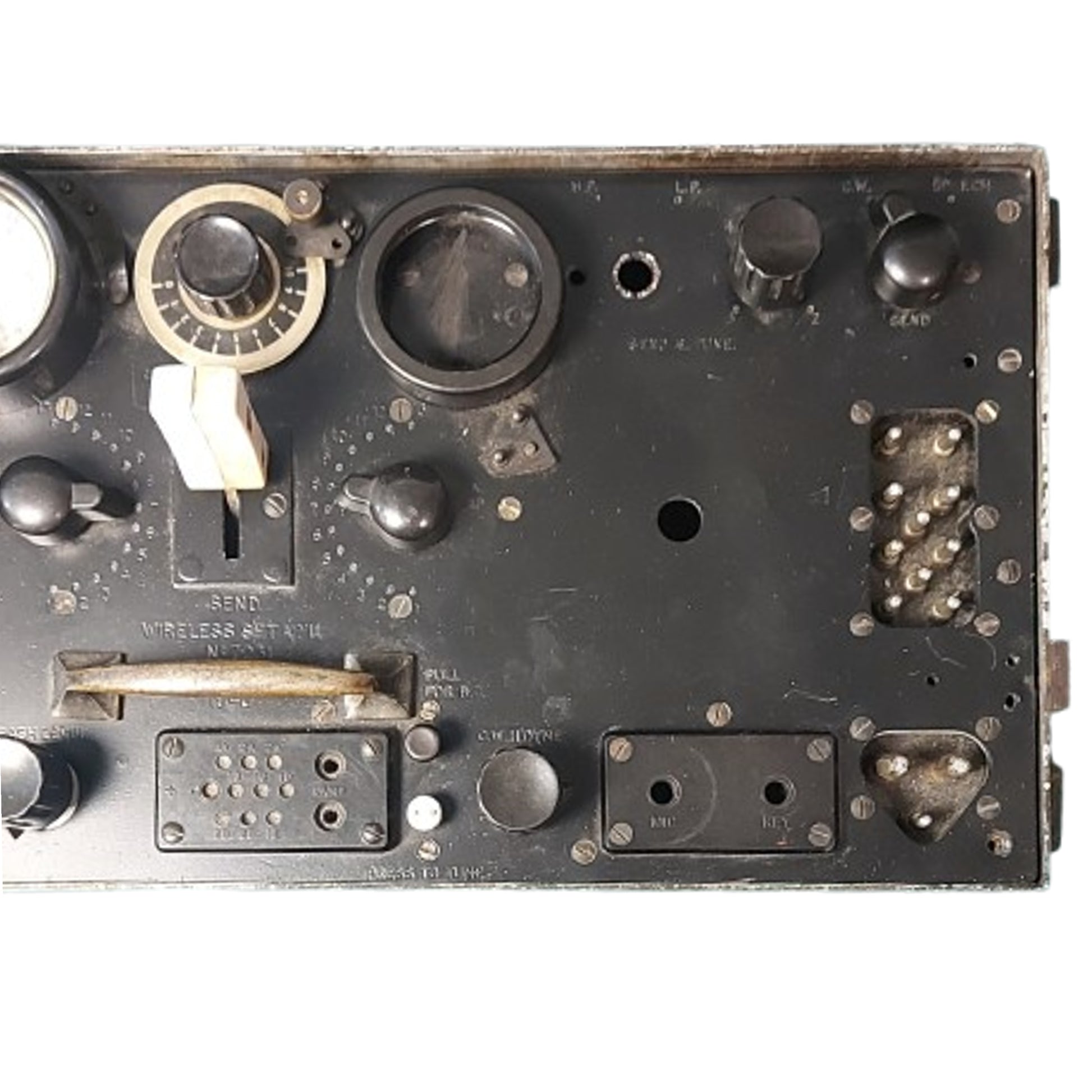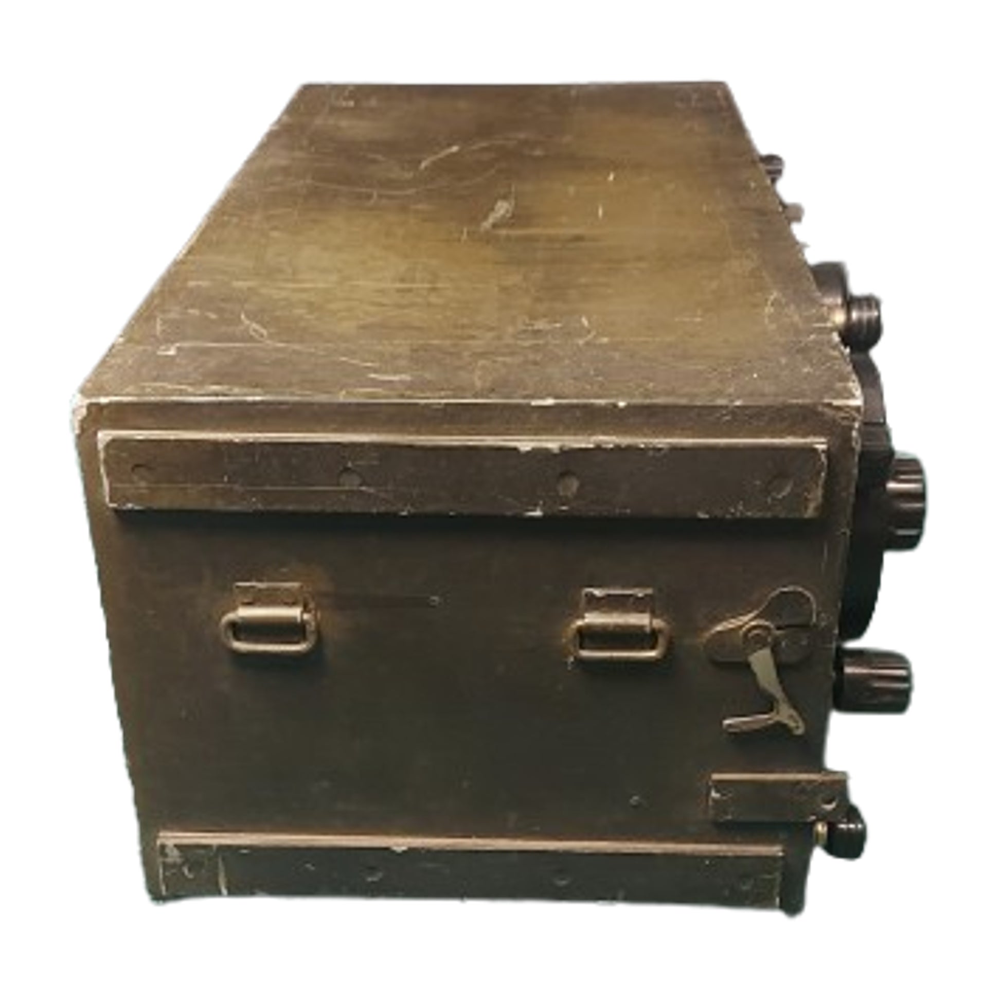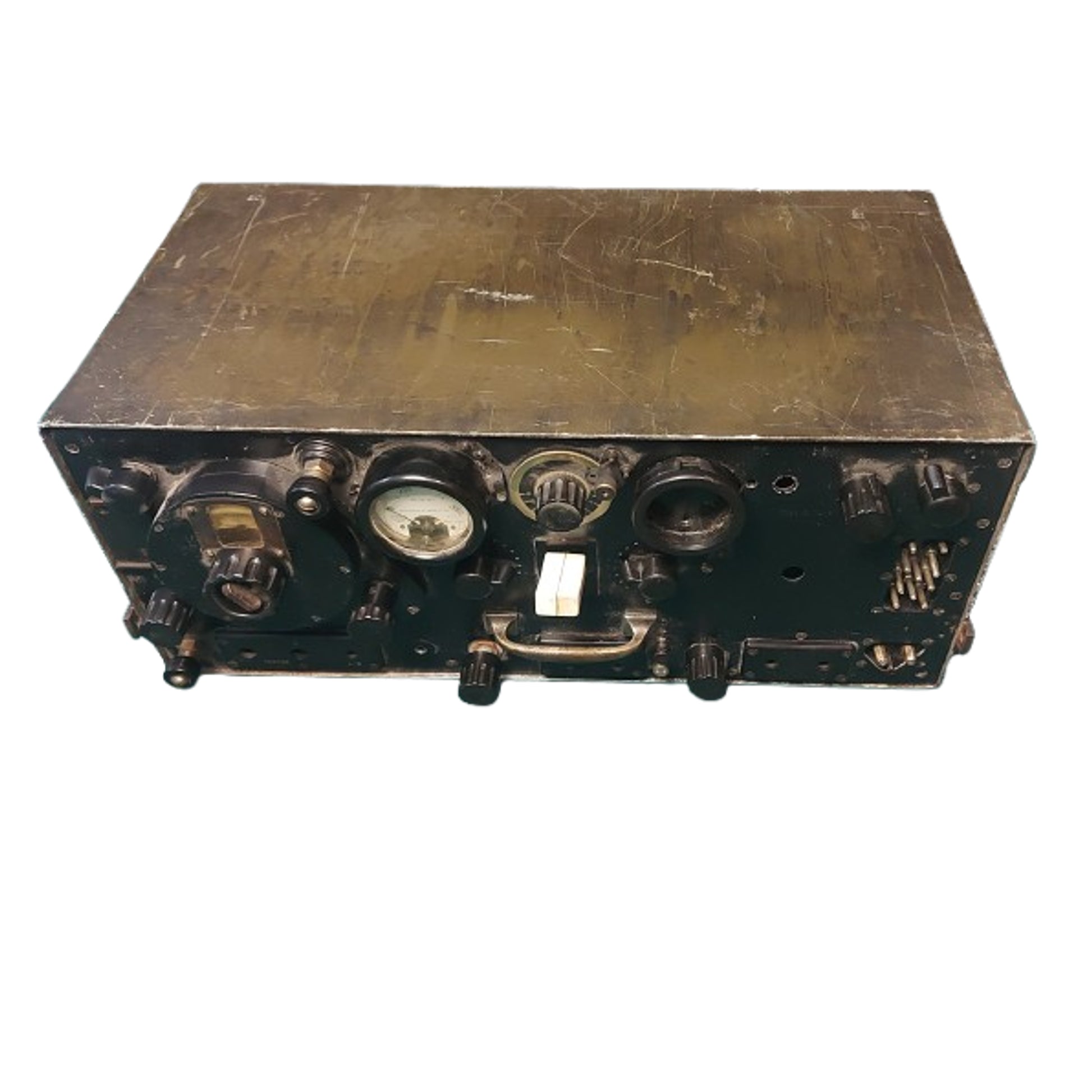 Radio set designed for the British Army in 1938, to replace the Wireless Set Number 1. Designed to be used in fixed locations like regimental field headquarters, as well as in vehicles and tanks. The No. 11 was replaced in tanks by the significantly more capable wireless number 19 set, while the No. 11 went on to be used by many others, notably the LRDG, The Long Range Desert Group. A harder to find radio transceiver in a metal case that measures 19 by 10 by 8 1/2 inches. In as found condition and missing the front cover. SKU: 62894