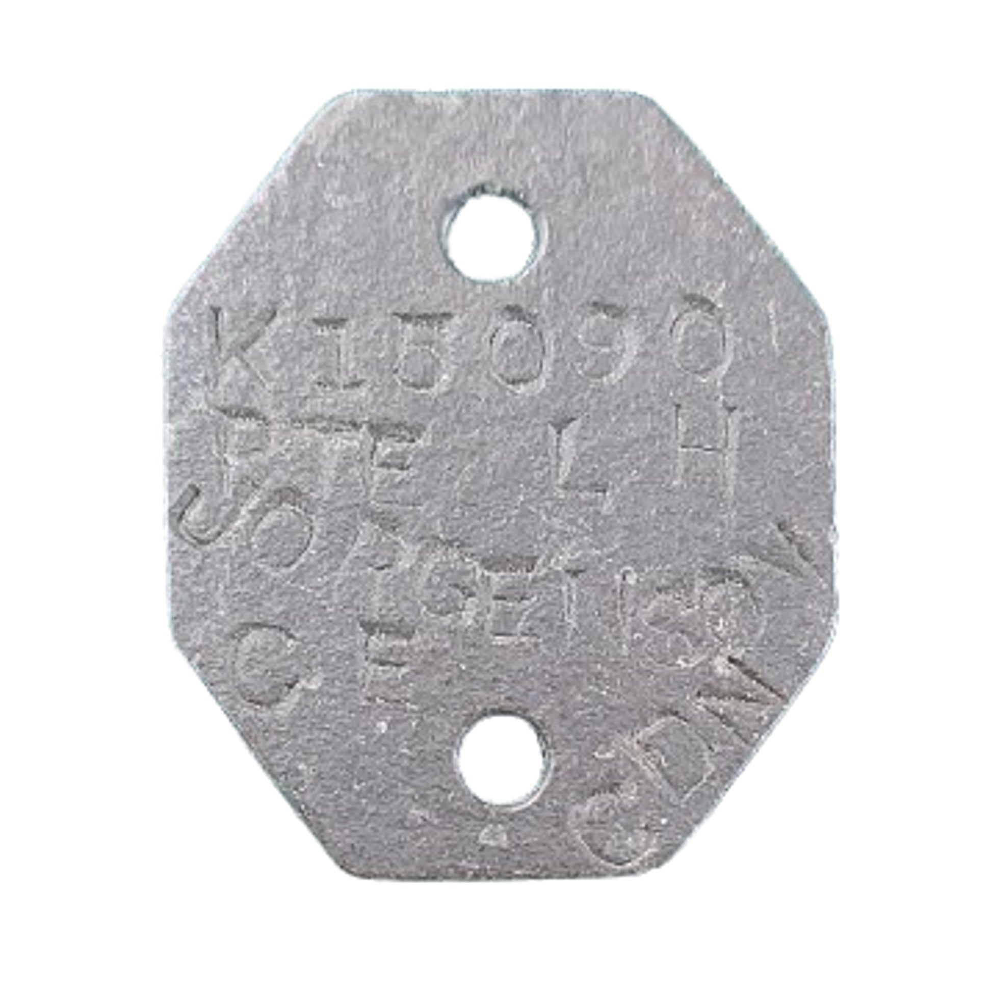A single WW2 Canadian Fibre I.D. Tag, named to K15090 Pte. L.H. Jorgenson. Service number to the 102nd (NBC) Cst. Bde. RCA Royal Canadian Artillery. SKU: 63148