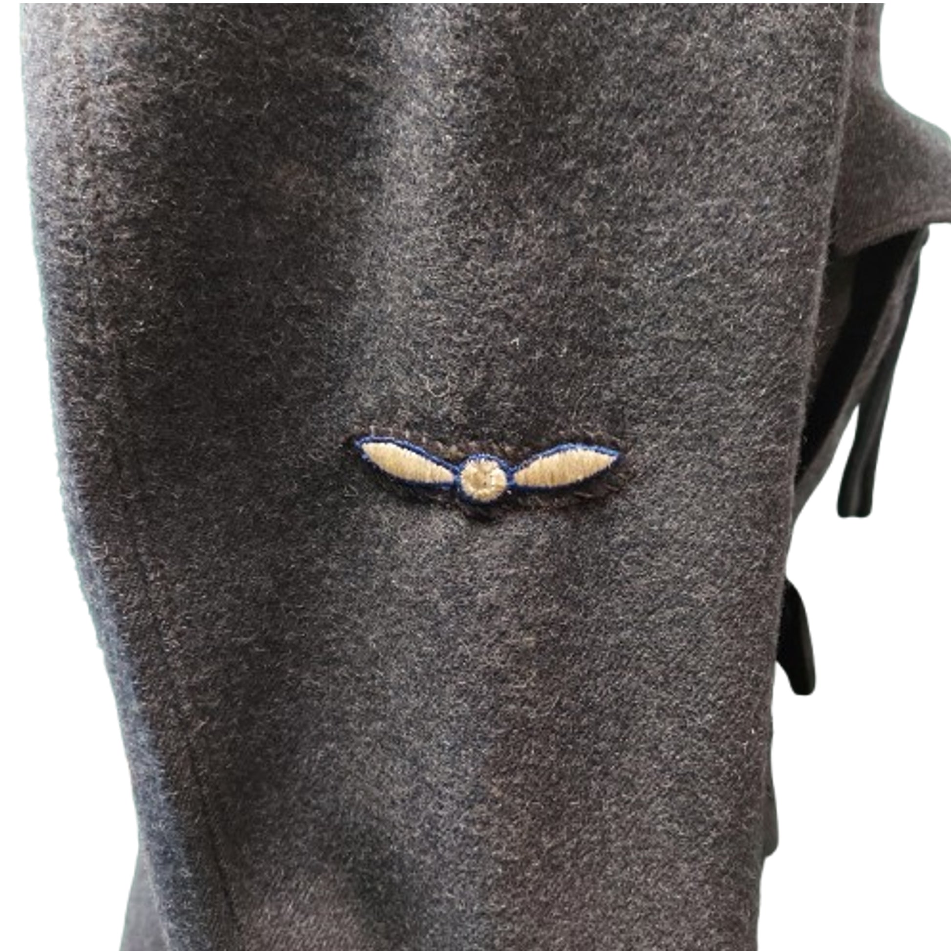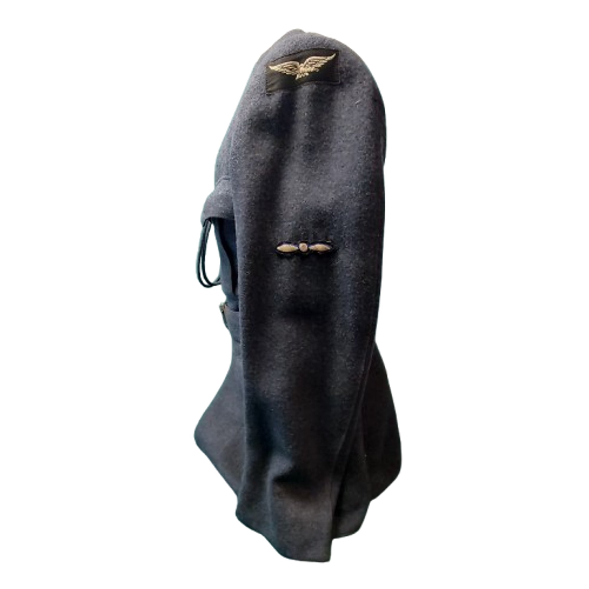 Heavy wool construction, open collar, 5 button front, 4 pocket WW2 RCAF service dress tunic with insignia in place to both sleeves and lanyard to the front. Adjustable length waist belt in place. Missing the 2 front breast pocket buttons. Well marked to the interior, and dated 1943 with a Canadian C-Broadarrow stamp. SKU: 63374