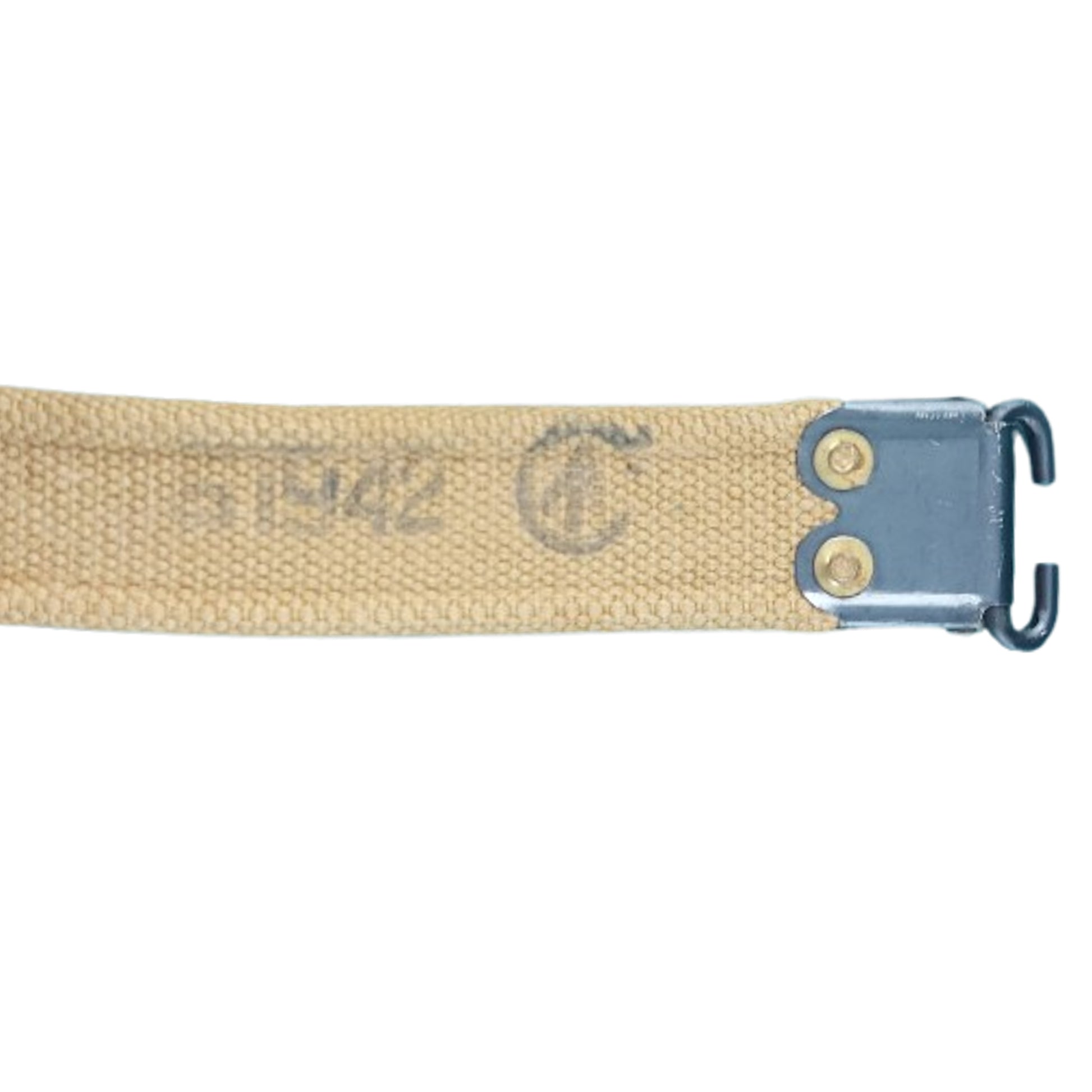 Webbed construction with brass tabs, measuring 43 inches overall, with blackened brass clips. Dated 1942 with a Canadian C-Broadarrow stamp. Excellent condition. SKU: 63166