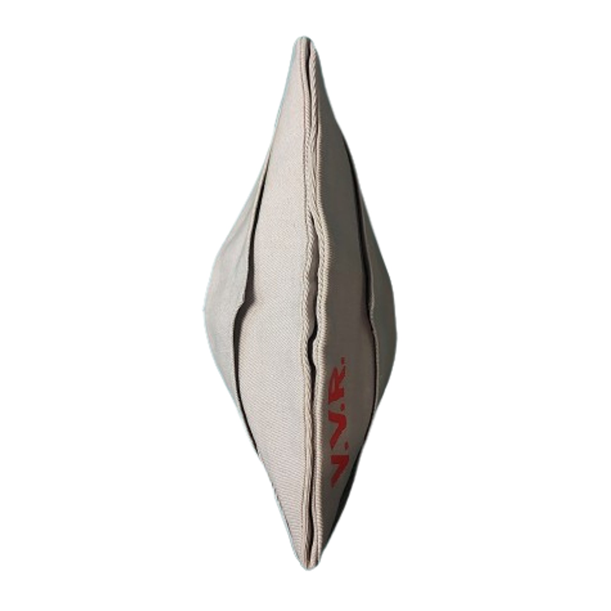 Grey material wedge cap with stenciled red V.V.R. to the front left side for Veteran's Volunteer Reserve, and 2 small brass CANADA front buttons in place. Dark brown leather sweatband to the interior. Shows use and wear with some staining. SKU: 63314