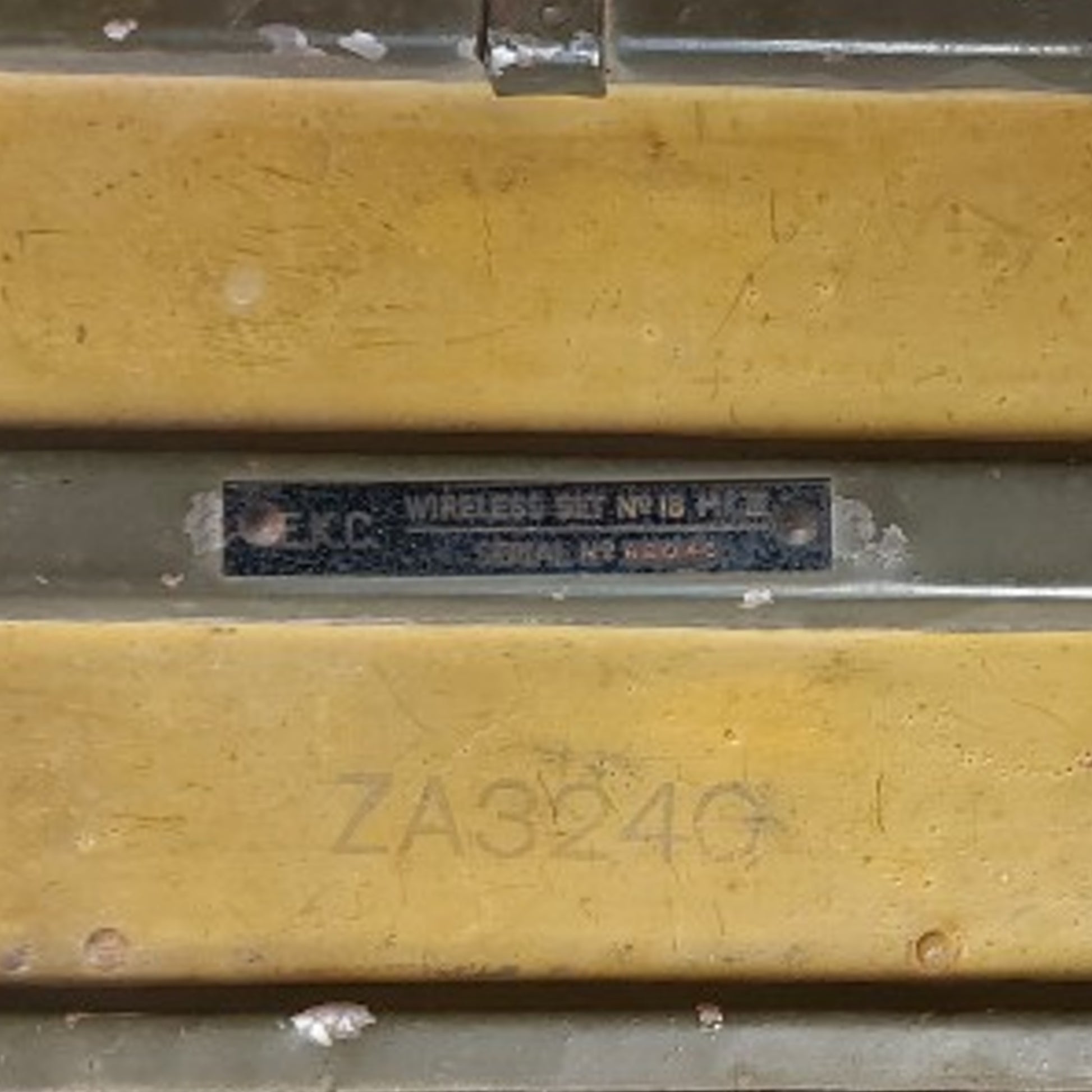 Metal cased WW2 Canadian Wireless Number 18 Radio Set, that measures 10 by 8 inches and being 17 inches in height, not including the built in meatal back harness that has all of the webbed carry straps and attachment hooks in place. Antenna base is attached to the outer side of the case with the 4 piece antenna being present in the hold compartment next to the base. The front of the case has an upper and lower metal, hinged and canvas canopy cover with a webbed closure strap to a roller buckle closure that protects the face of the case and radio. All labels are in place to the face of the radio with all dials, switches and cables being present. Metal identification plate and part number to the top exterior of the case. The set is also accompanied with the headset that shows expected use, and the black bakalite microphone, with both having the collector plugs in place. This example is very original and complete. While many offered onto the market today have missing or replacement reproduction parts, this example has survived in it's original field used condition due to having been part of a museum collection. SKU: 63259